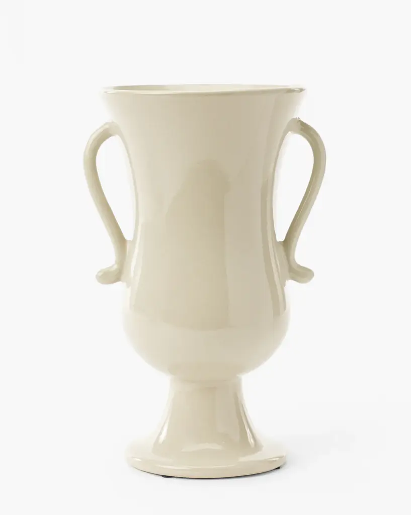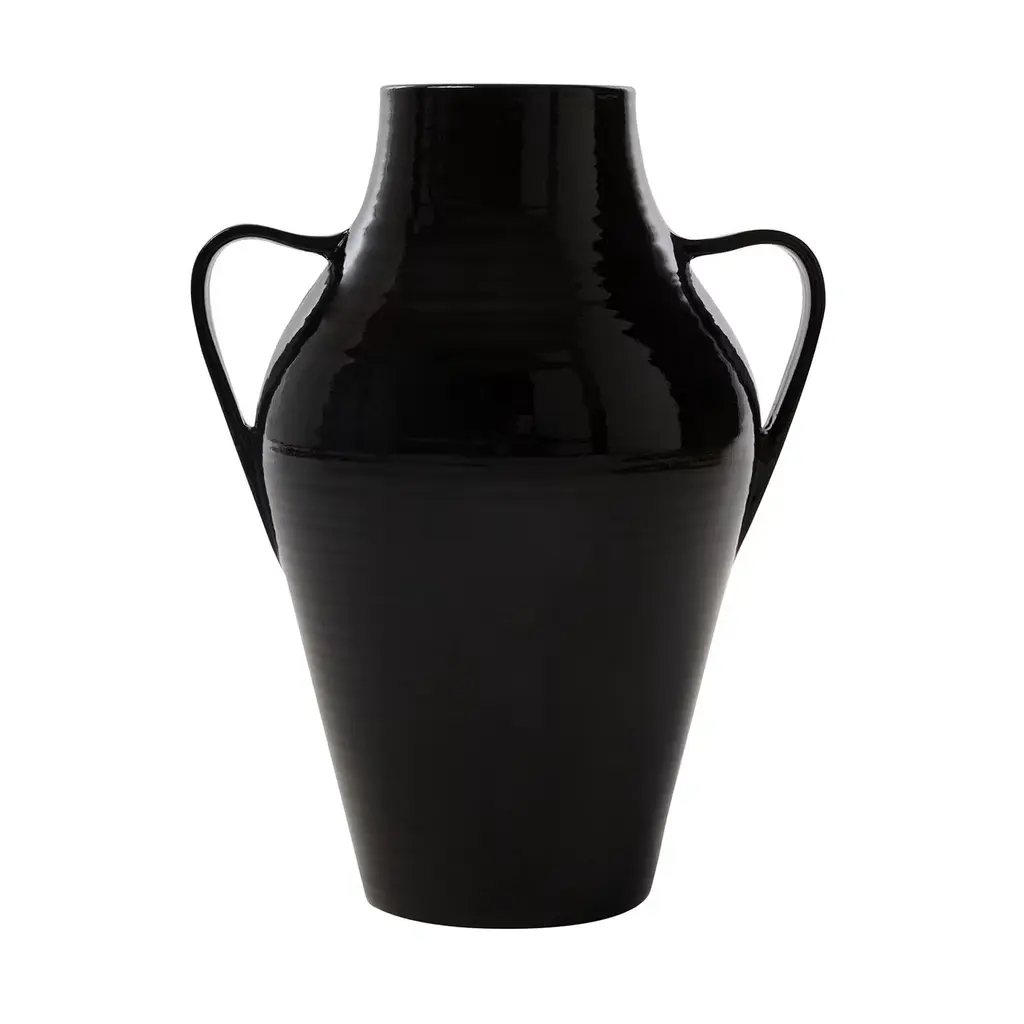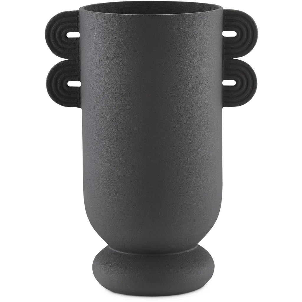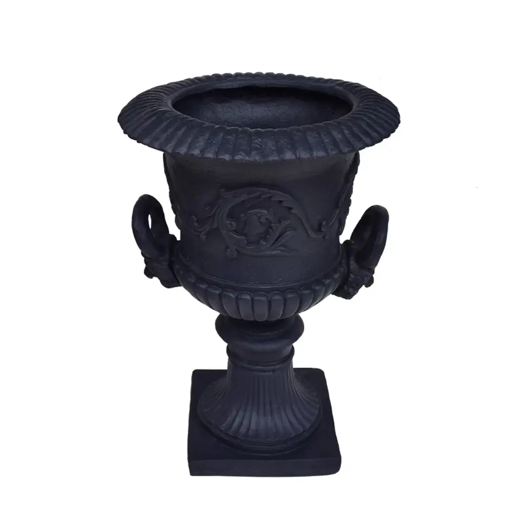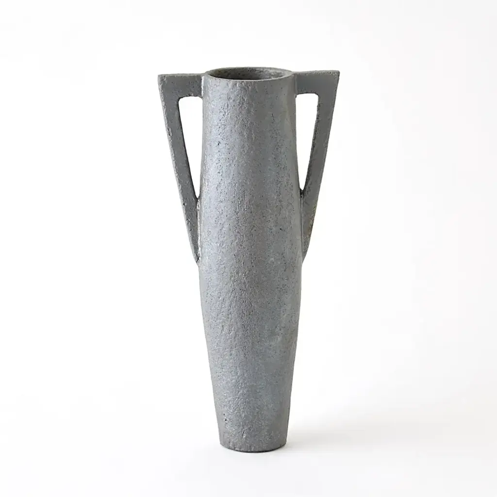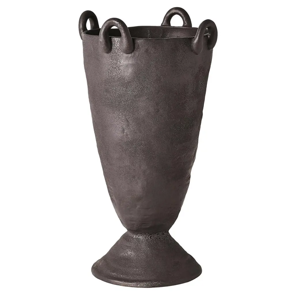 Our metal baluster urn reflects the bold scale of the American Art Deco movement of the 1920s. The classic form, defined by the interplay of curved lines and square angles, is underscored by a rich, grey patina.
