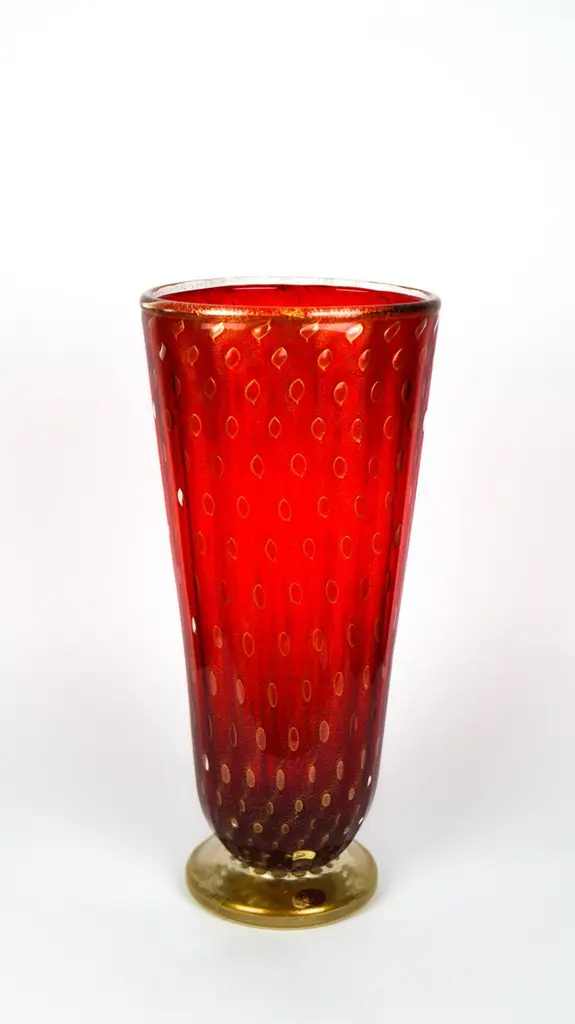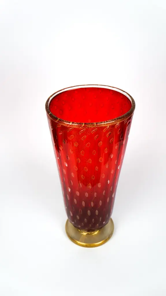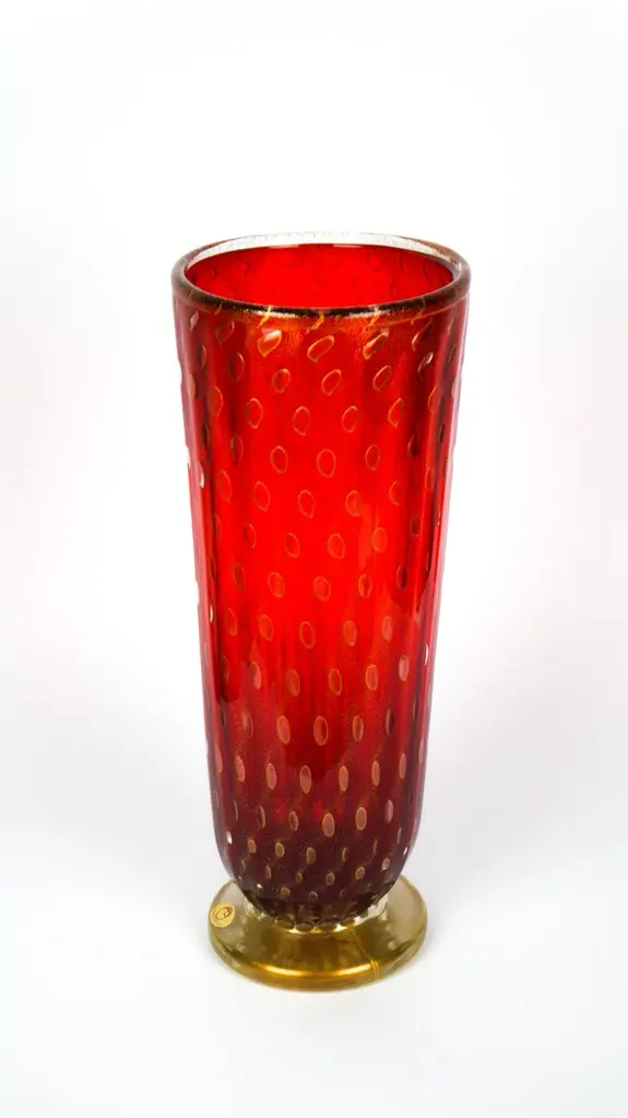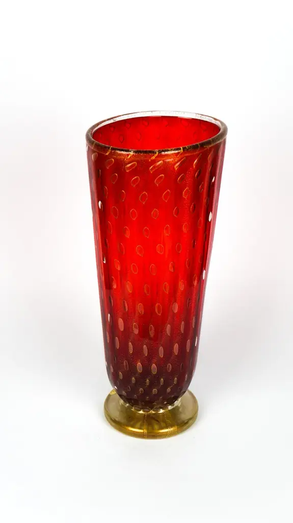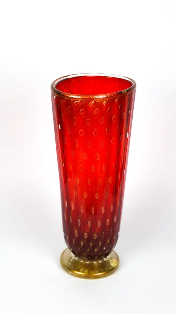 Art Deco Red Gold Design Italian Art Glass Vase By Stefano Mattiello