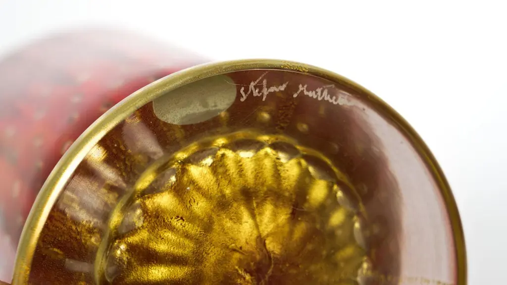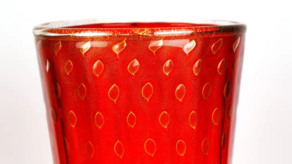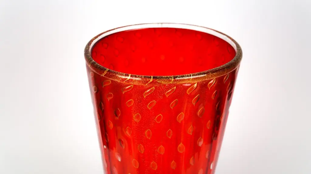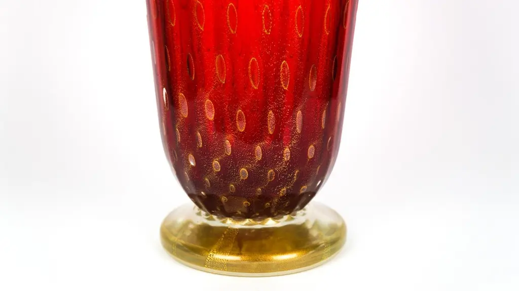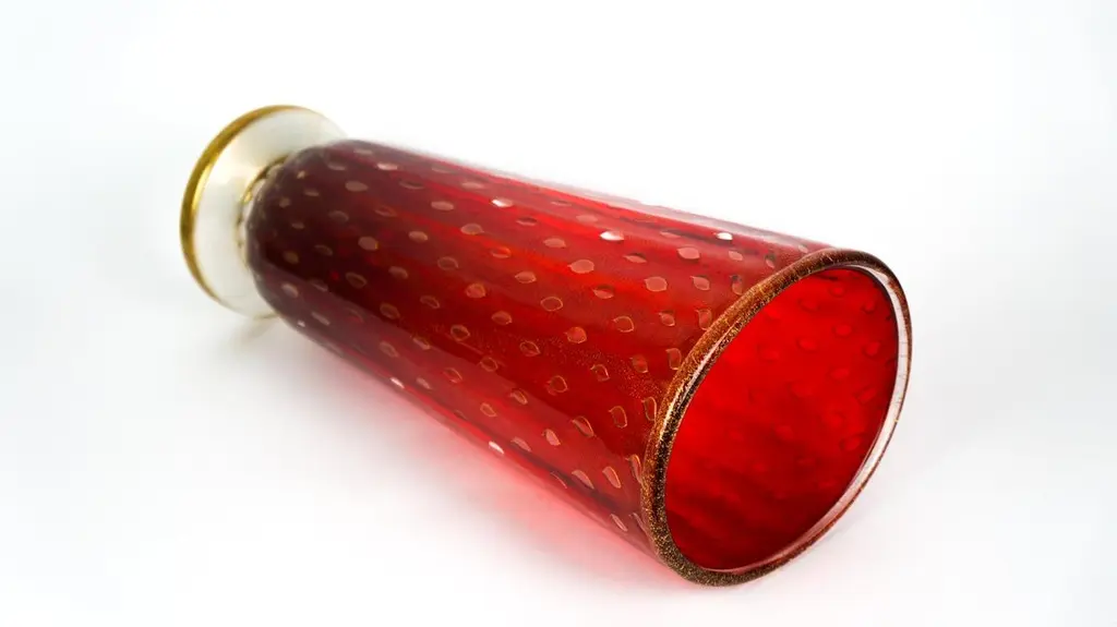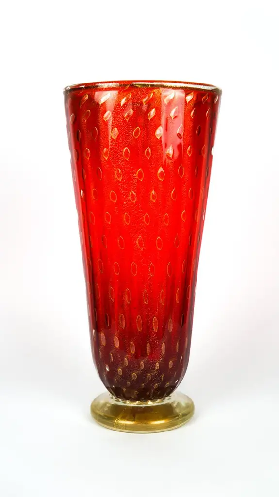 Art Deco Red Gold Design Italian Art Glass Vase By Stefano Mattiello