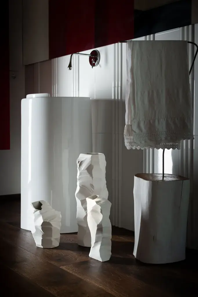 New collection made up of three porcelain vases/sculptures with a bold personality, designed by the architect and designer Giovanni Luca Ferreri. Pure white, the signature style of FOS, changes shade every time light hits the glacier-like facets. The purity of icebergs is thus honored by the use of a precious material such as porcelain, bringing the majestic elegance of Nature in the home interiors.