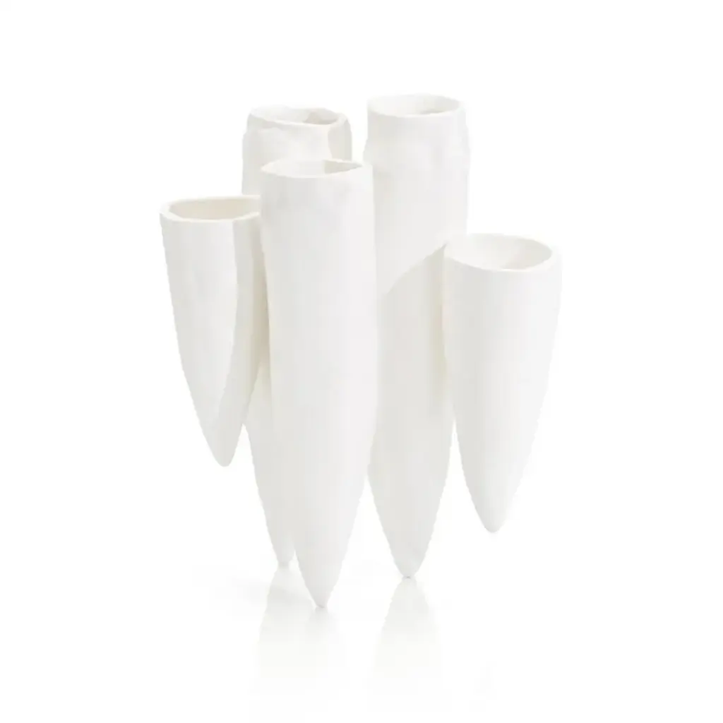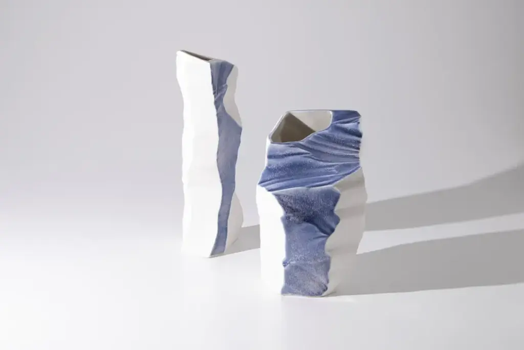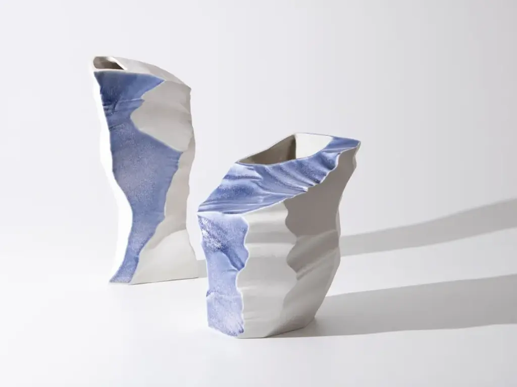 New collection made up of three porcelain vases/sculptures with a bold personality, designed by the architect and designer Giovanni Luca Ferreri. Pure white, the signature style of FOS, changes shade every time light hits the glacier-like facets. The purity of icebergs is thus honored by the use of a precious material such as porcelain, bringing the majestic elegance of Nature in the home interiors. ARTIKA SKY vases are decorated with metal oxides on one facet, creating a blue shade with a galaxy of violet dots, always different and unique.