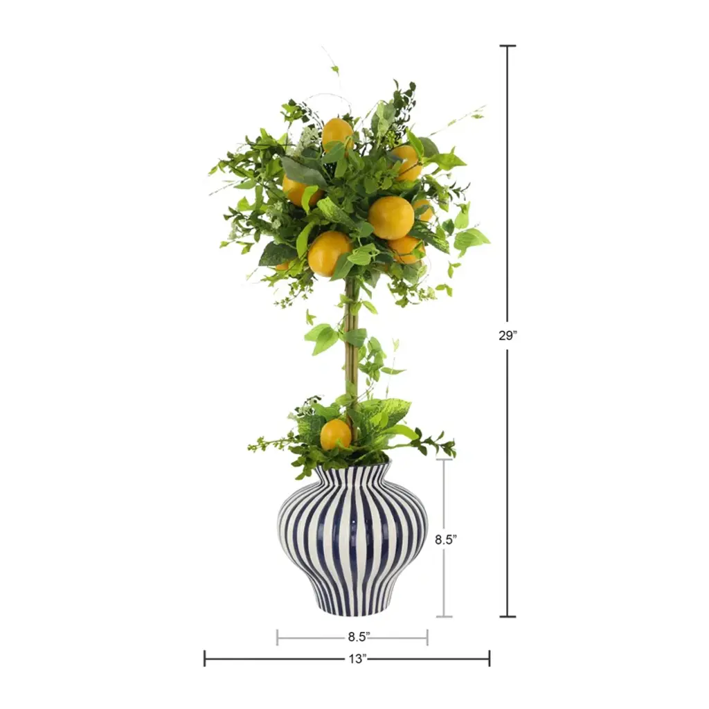 Brighten up your space with this stunning faux lemon topiary. Featuring lifelike lemons and lush greenery, this topiary is set in a gorgeous blue and white ceramic vase, offering the perfect pop of color to your existing décor. With no maintenance required, you can simply place your topiary and enjoy the look of fresh growing lemons without the worry or hassle of upkeep.