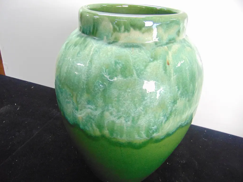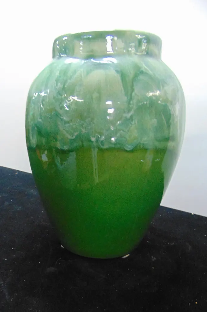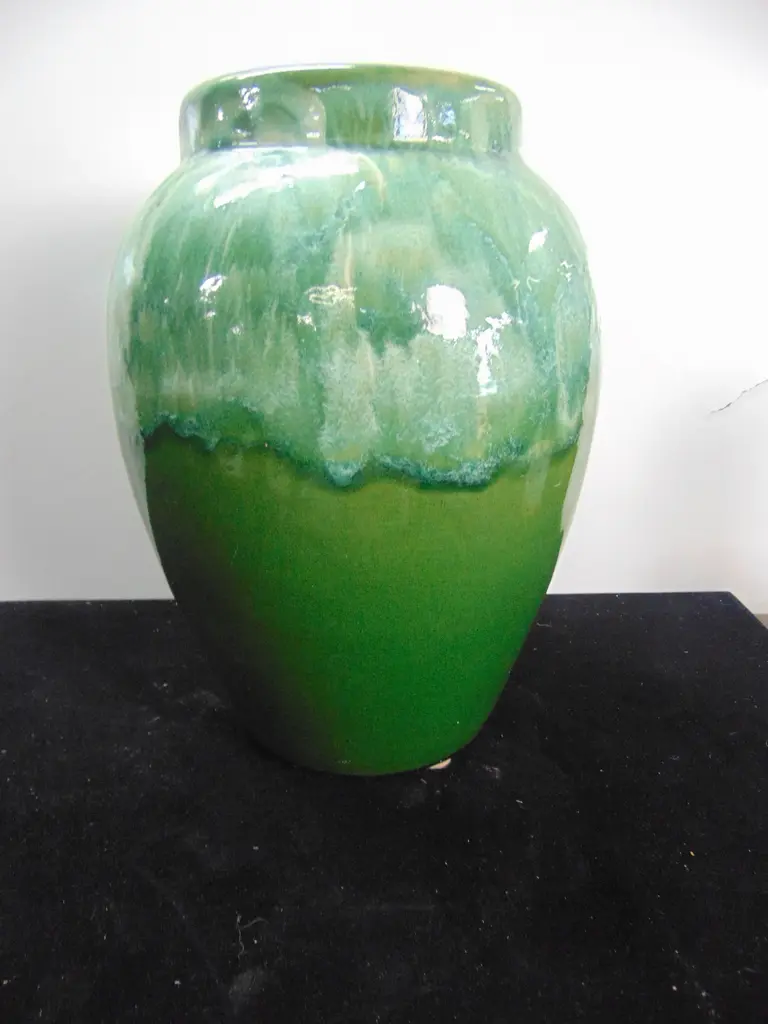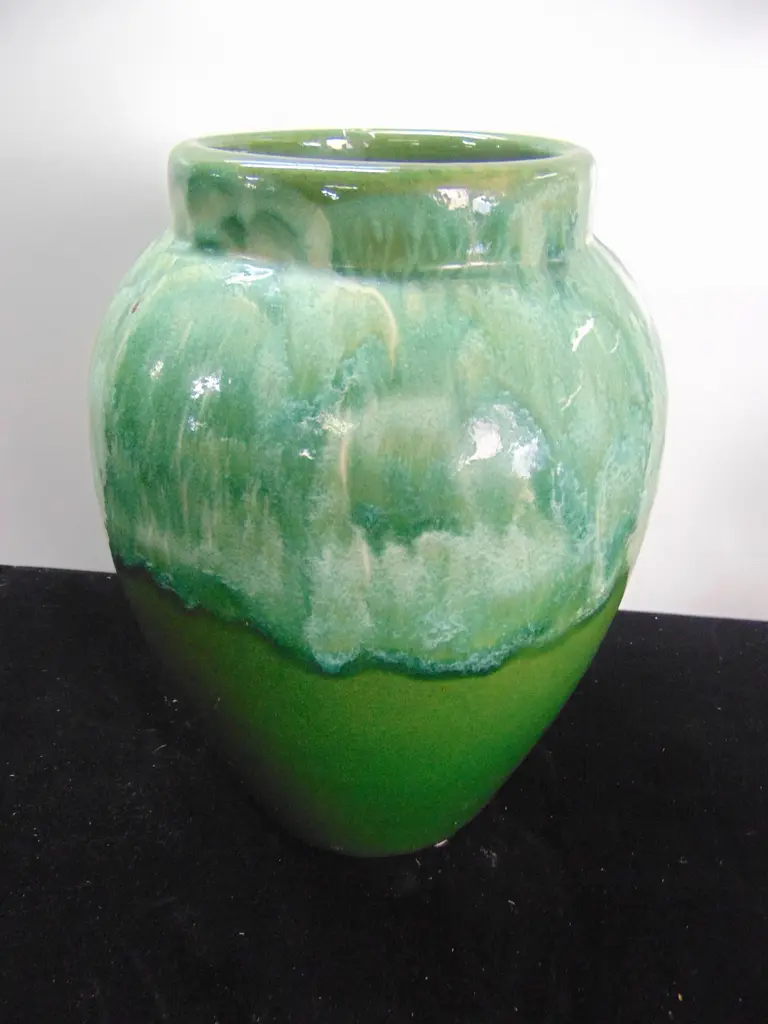 Arts & Crafts pottery vase, drippy green and white glaze
