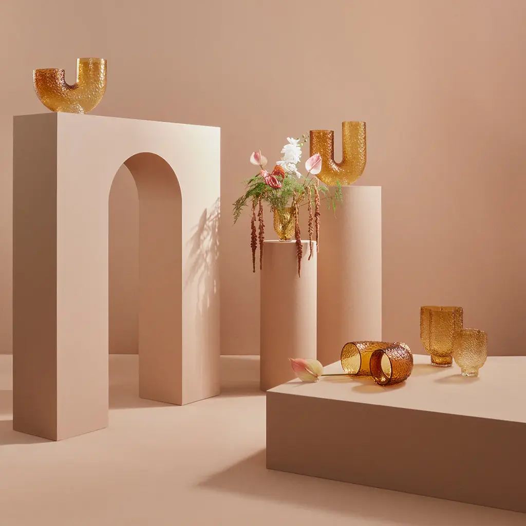 A vase and a piece of art. The Arura trio vase of mouth blown stained glass is a truly spectacular piece. The vase can transform any room with its uniqueness – creating a sense of exclusivity with its vibrant and wonderful look. Arura has an eccentric design that comes from playing with dimensions, which is evident by the elegant tripartite design of the trio vase.