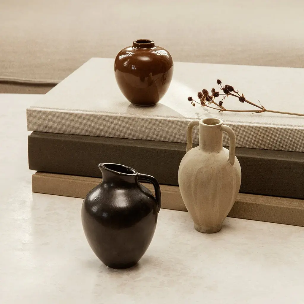 Reminiscent of ancient Greek vases, the petite, porcelain Ary Mini Vase comes in a selection of distinctive shapes. Varying in size, colour and glaze, each has its own personality and unique expression. Use the Ary Mini Vase in a small, decorative still life with other vases from the series or alone with single stem flowers.