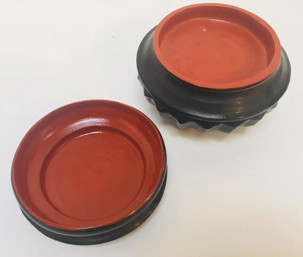 Asian Black And Red Round Box Lacquer Offering Vessel Urn
