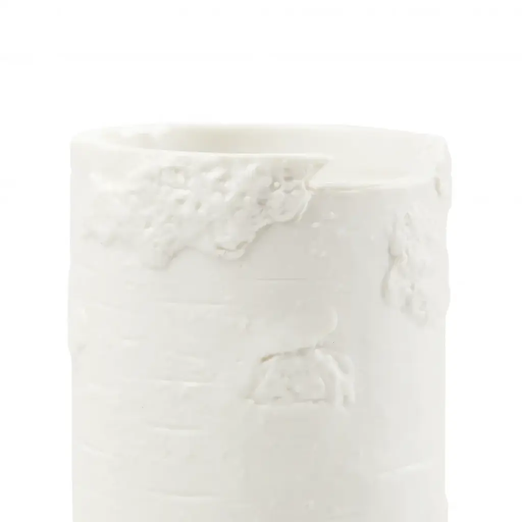 The Aspen Vase Collection is a naturalist study of texture. Finished in a matte glaze and offered in two sizes, these slim Blanc de Chine vases reflect the beauty of a gentle woodland. The lifelike bark texture is accented with slim notches that mimic tree knots offering a creative way to vary your floral arrangements. These birch-inspired vases infuse an element of provincial serenity into your home while also providing dimension and function.