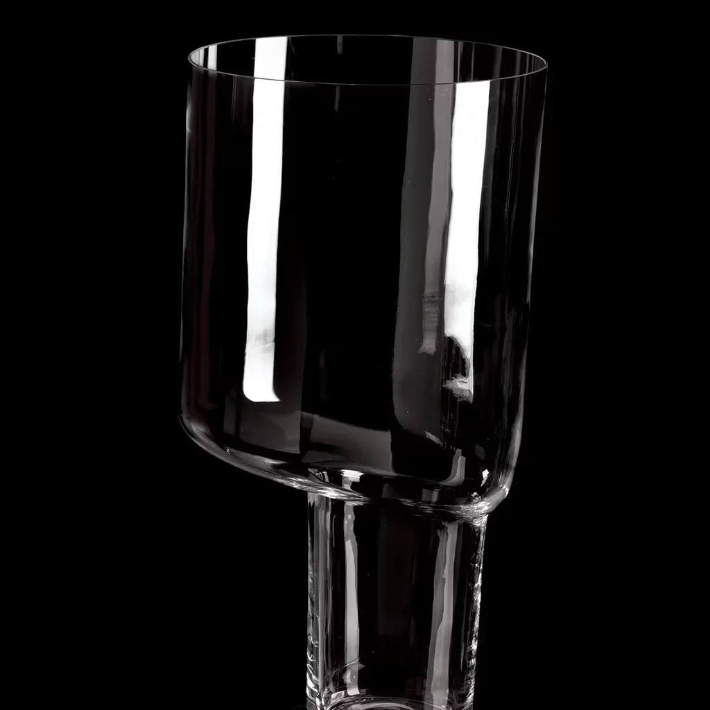 A sculptural piece of vintage allure, this exquisite vase is part of a collection designed in 1985 by Carlo Moretti. Named after its asymmetrical silhouette which creates an interplay of shapes between the thick and hollow stem and the seemingly unbalanced top, this superb piece is entirely handcrafted of mouth-blown Murano glass and finished by hand.