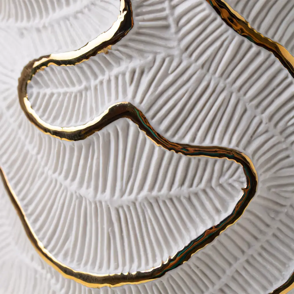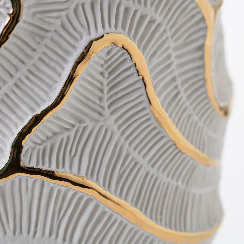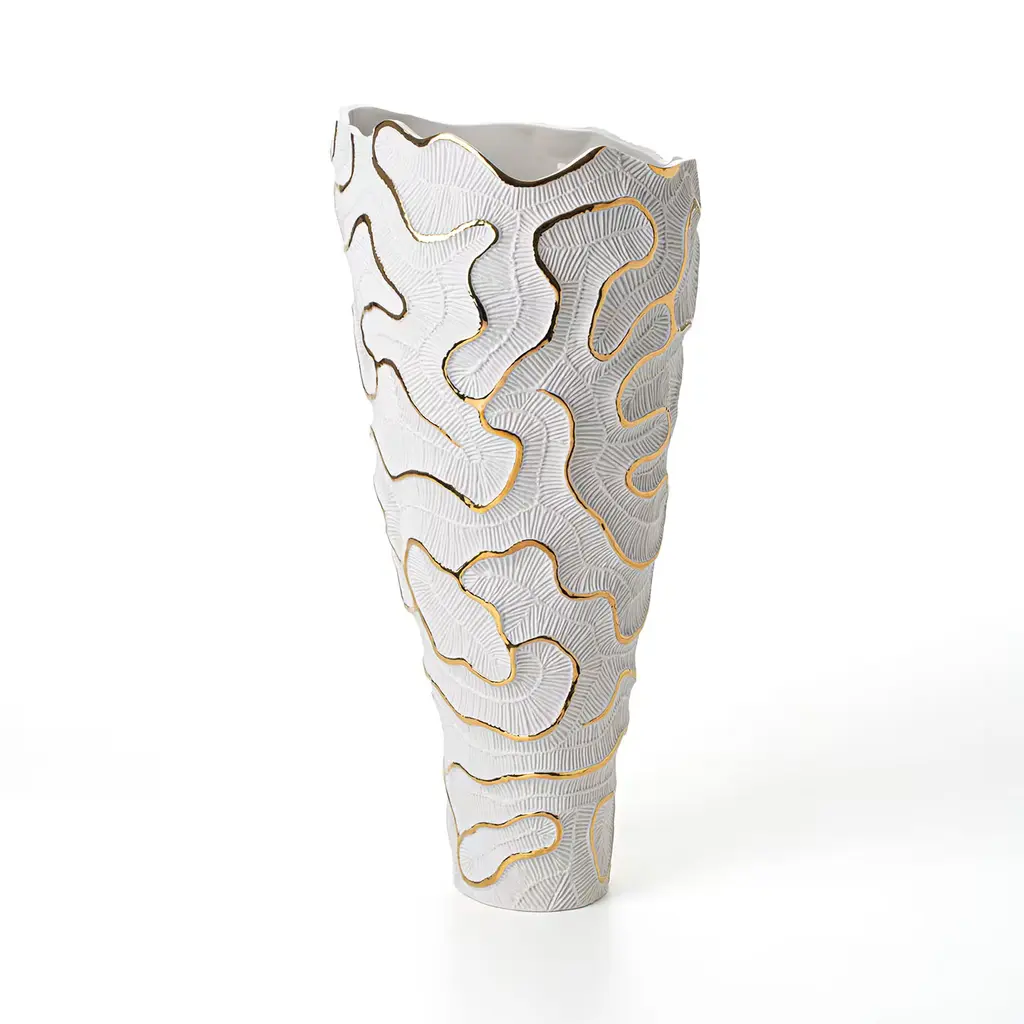 A striking texture, symbolizing the fossils of madrepores, acts as a skeleton for this vase of the Fossilia collection. The stunning composition, the perfection of form and the accuracy in the details of the porcelain make this piece an exquisite objet d'art. The vase is embellished by the use of gold which has been applied by hand and fixed through an additional firing process.
