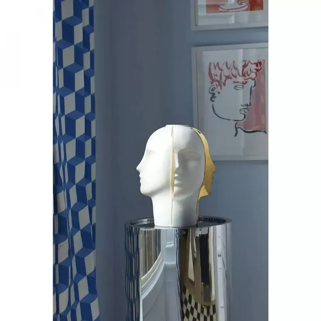 A surreal head-turner, our Atlas Split Vase features four dual looks—each flawlessly halved visage reveals a matte porcelain profile from one angle, and a glittering gold silhouette from the other. With or without flowers, this vessel is the visual treat every chic space needs.