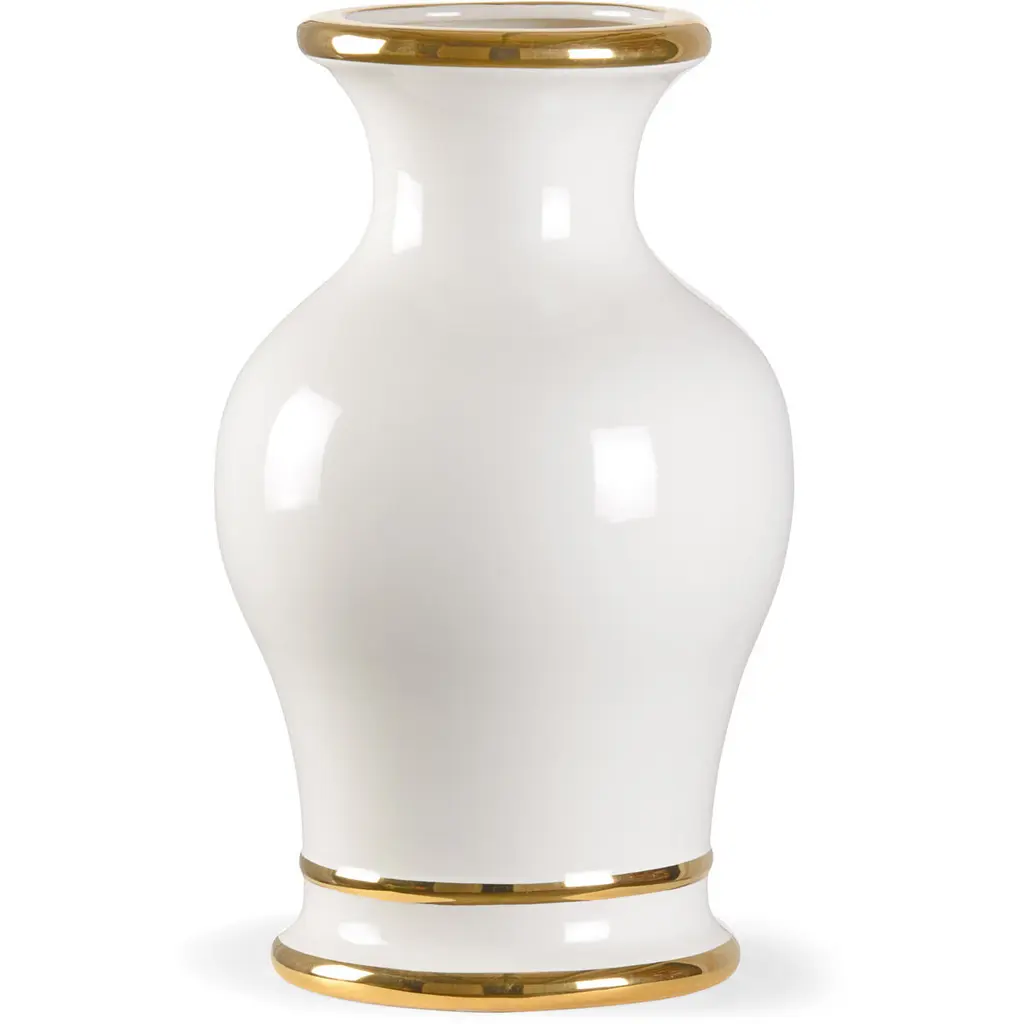 A Modern Take On An Antique Vase With Graceful Lines And Metallic Satin Gold Detailing. Available In A Variety Of Colors.