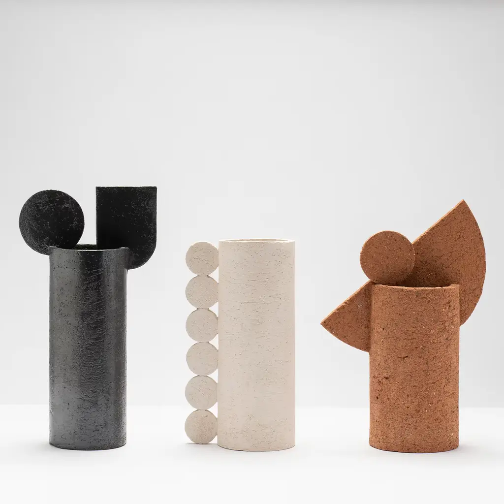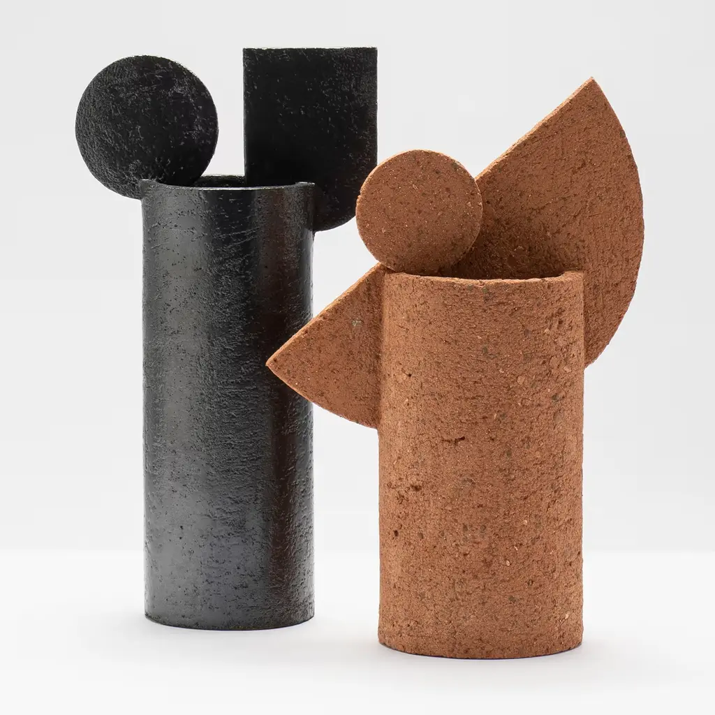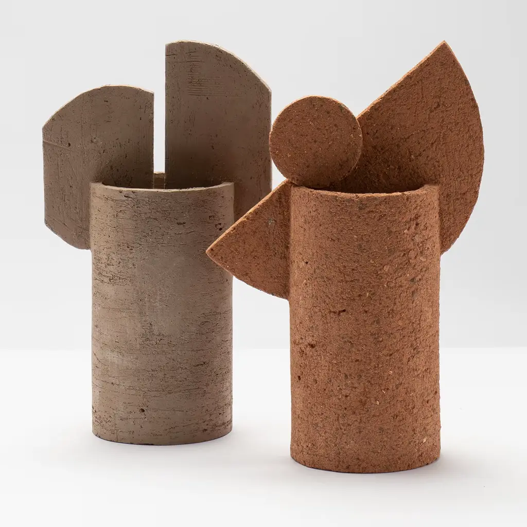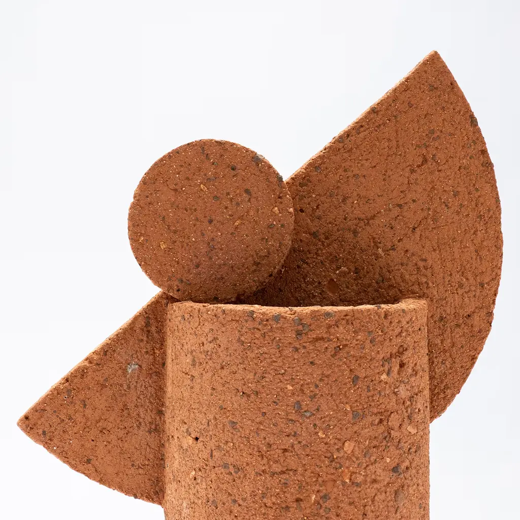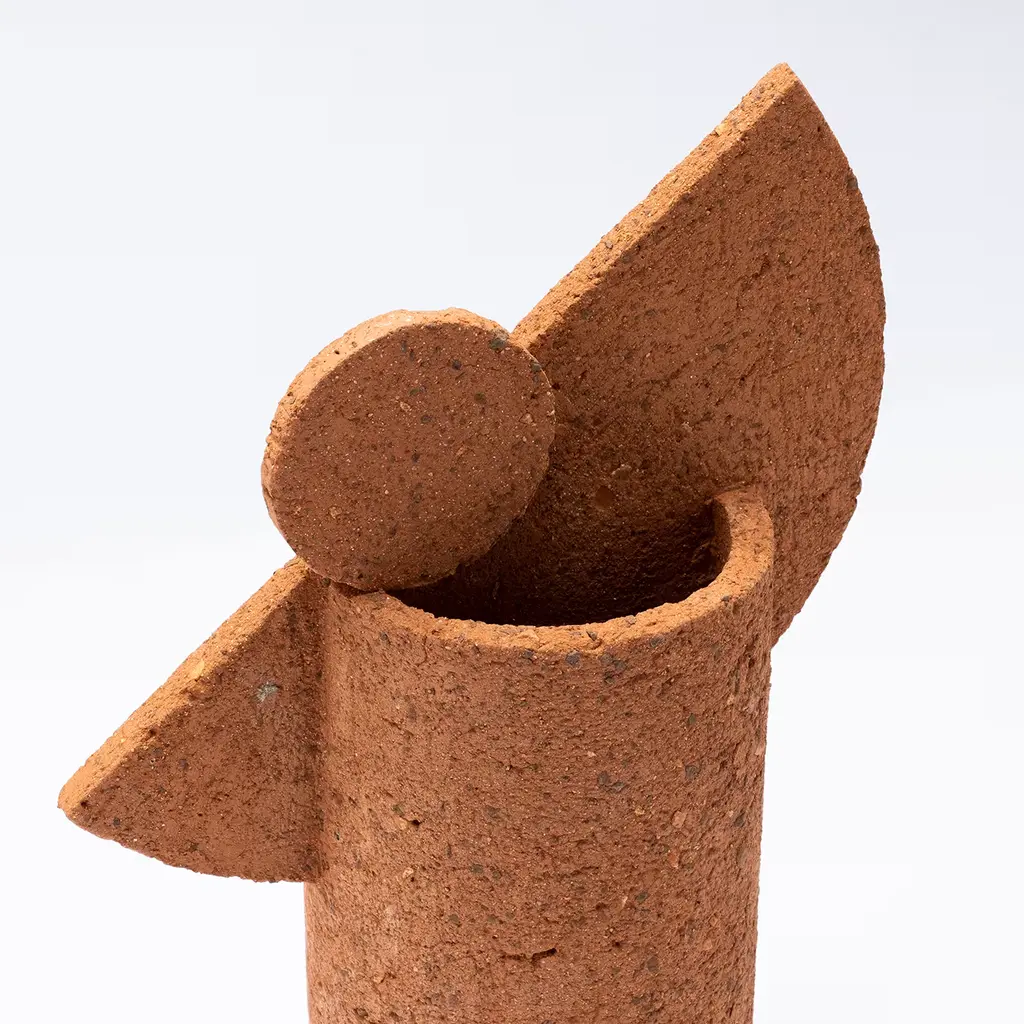Earth seemingly condensed in a distinctly contemporary silhouette. This terracotta vase belongs to a series that draws inspiration from faraway lands and embodies their ancestral flair. An ensemble of a semi-circle and a smaller circle mounted on a cylindrical base stand out for its grain texture and warm tone. The name evokes primitive sounds, sealing the ancestral quality of the piece.