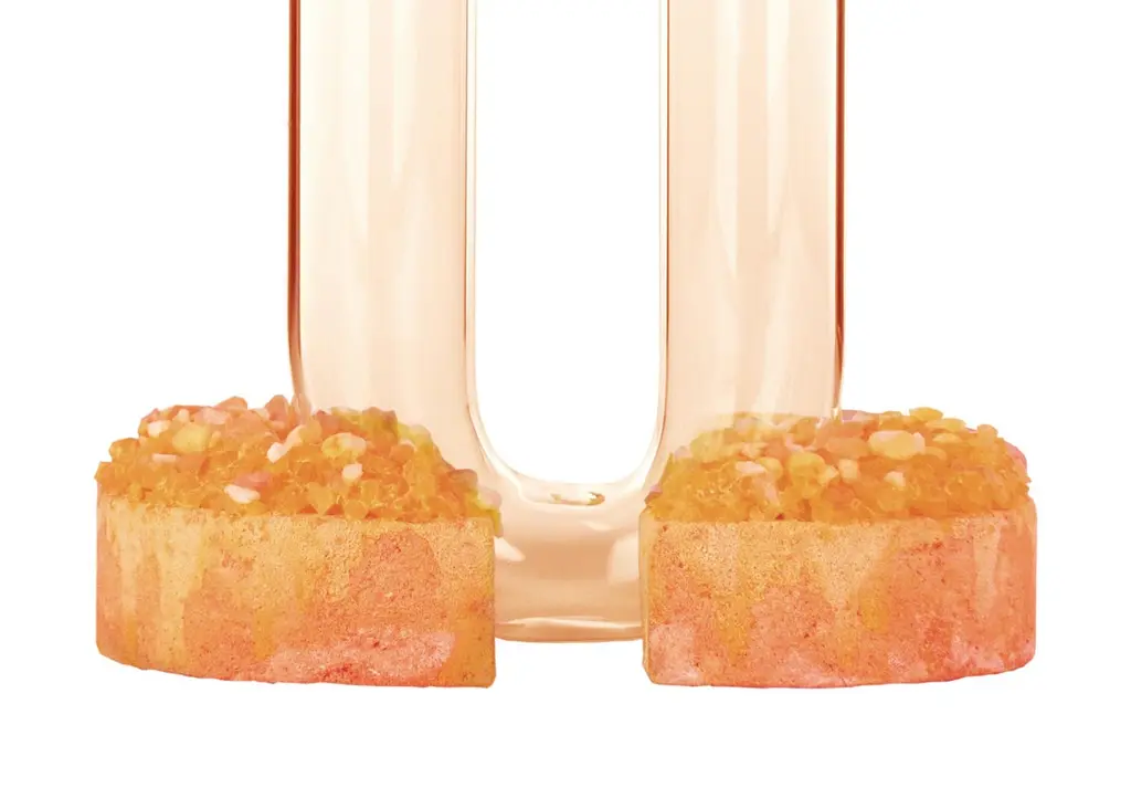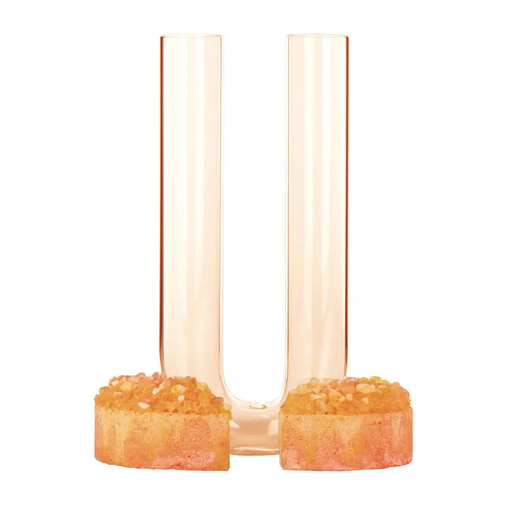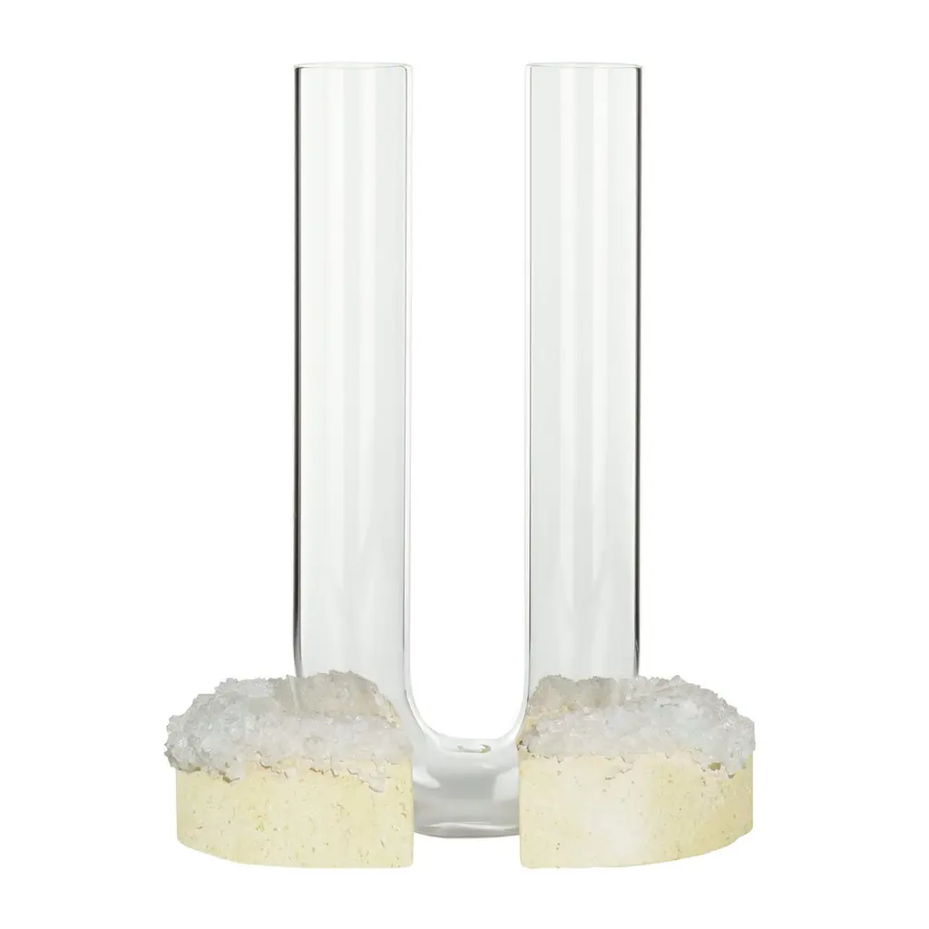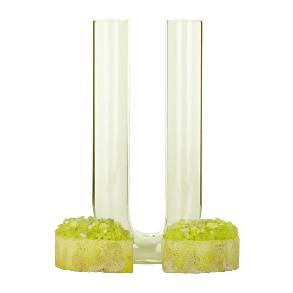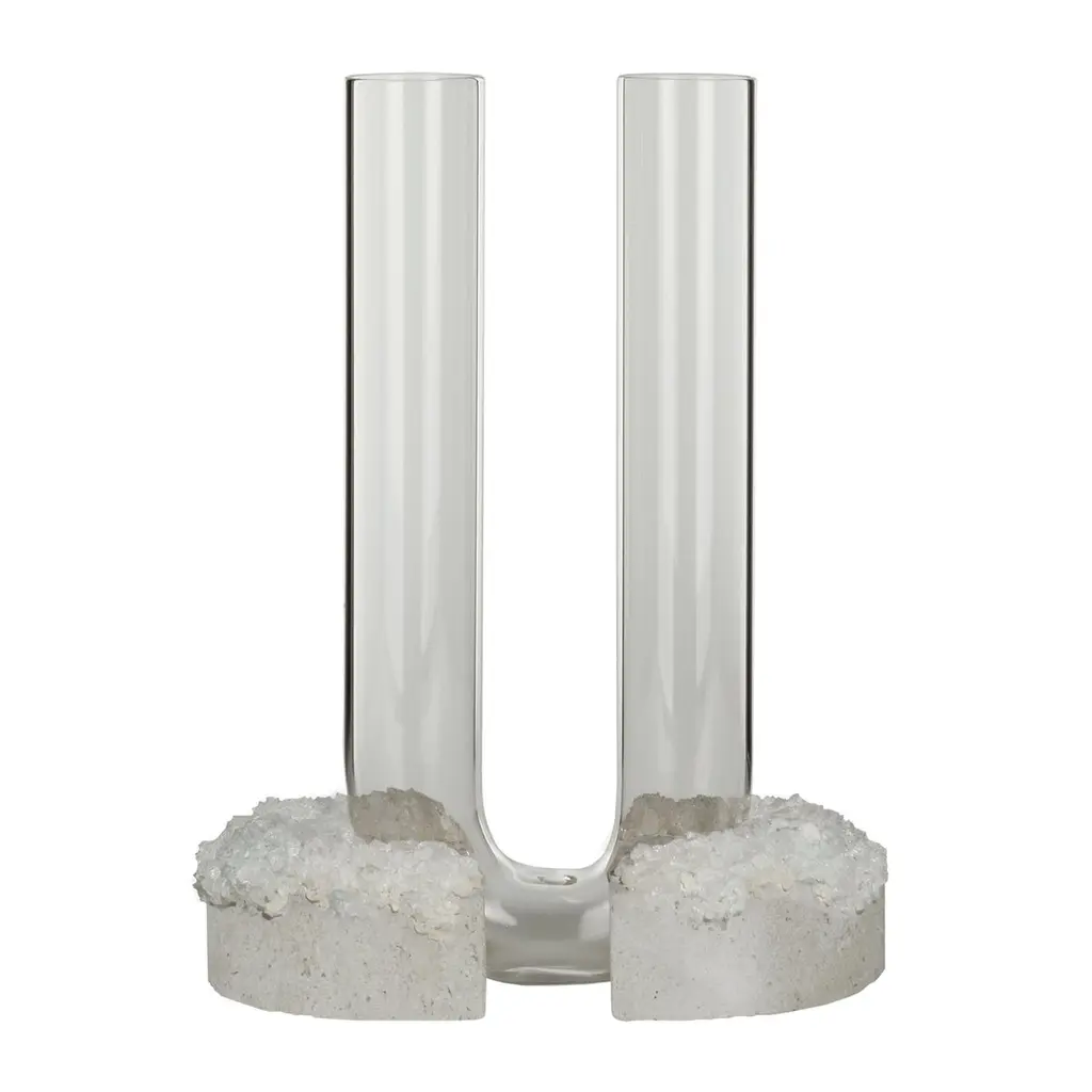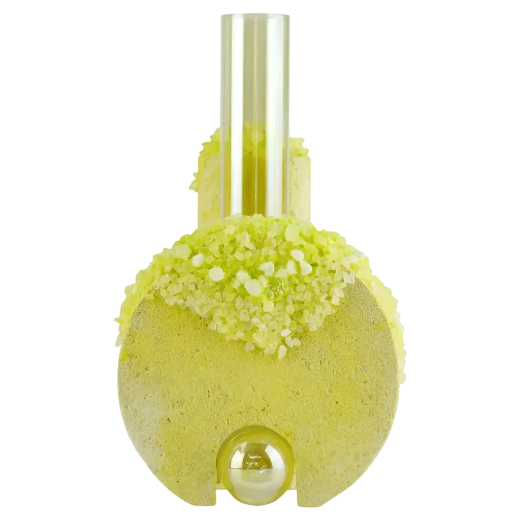 Autumn Cochlea del Risveglio Seasons Edition vase by Coki BarbieriDimensions: W 24 x D 14 x H 30 cm.Materials: Handcrafted stone made with Matera stone fragments, sedimentary rocks of the Italian Apennines and pure water, Italian rock salt crystals, yellow and pink mineral pigments from Italian soils, orange painted borosilicate glass.Cochlea del Risveglio - SEASONS EDITION - AutumnEmbellished with Italian rock salt crystals colored with natural pigments from the Italian subsoil, this vase from the Cochlea collection (inspired by the metamorphosis of snails) represents architecture and nature united together: curved and geometric shapes resulting from glass and sustainable stone.Like all COKI products, it is entirely made in Italy with raw materials processed according to the highest standards of recovery of virgin stones and using only substances that are not harmful to humans and the environment, without components of animal origin.The particular technique Glaciazione makes it possible to unite crystals and the handcrafted stone created from fragments of historical stones found in Matera (Città dei Sassi, UNESCO World Heritage, European Capital of Culture) and sedimentary rocks of the Italian Apennines, recovered and reprocessed following a sustainable production cycle. This material research is originalfrom the COKI studio and uses a natural chemical and physical adhesion process between the two materials. The result is a composite material, biodegradable in water, so it is recommended not to wet the stone part and always keep it away from sources of humidity.A precious objects collection made in Italy with natural and vegan origin materials, conceived by architectural and product designer Coki Barbieri and created by the local craftsmen to expand a new slow living awareness and surround oneself with a few objects, capable of staying alongside us over time.The climate emergency and increased future anxiety push our work to imagine alternative ways of living, producing, and consuming. For that Coki Barbieri uses notions of geology, chemistry, and design culture to create new products (and materials) from fragments and waste from natural products (such as stone and minerals).Coki Barbieri established her eponymous studio-workshop in Rimini in 2017, bringing to life a sustainable way of conceiving the product design for home. Nature inspires her environmentally conscious creations, which are imbued with emotional energy while maintaining their aesthetic impact and practical functionality. Coki collaborates with talented Italian craftsmen to produce one-of-a-kind homeware objects capable of unlocking new synergies between concepts, materials, and use.