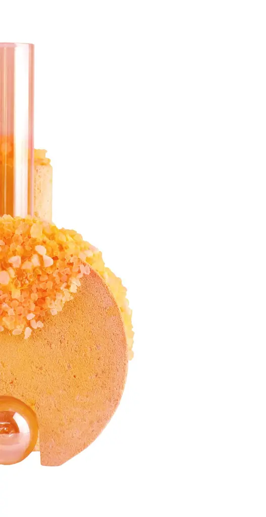Autumn Cochlea della Metamorfosi 2 seasons edition vase by Coki BarbieriDimensions: W 14 x D 15 x H 24 cm.Materials: handcrafted stone made with Matera stone fragments, sedimentary rocks of the Italian Apennines and pure water, Italian rock salt crystals, pink and yellow mineral pigments from Italian soils, orange painted borosilicate glass.Cochlea della Metamorfosi 2 - SEASONS EDITION - Autumn.Embellished with Italian rock salt crystals colored with natural pigments from the Italian subsoil, this vase from the Cochlea collection (inspired by the metamorphosis of snails) represents architecture and nature united together: curved and geometric shapes resulting from glass and sustainable stone.Like all COKI products, it is entirely made in Italy with raw materials processed according to the highest standards of recovery of virgin stones and using only substances that are not harmful to humans and the environment, without components of animal origin.The particular technique Glaciazione makes it possible to unite crystals and the handcrafted stone created from fragments of historical stones found in Matera (Città dei Sassi, UNESCO World Heritage, European Capital of Culture) and sedimentary rocks of the Italian Apennines, recovered and reprocessed following a sustainable production cycle. This material research is originalfrom the COKI studio and uses a natural chemical and physical adhesion process between the two materials. The result is a composite material, biodegradable in water, so it is recommended not to wet the stone part and always keep it away from sources of humidity.A precious objects collection made in Italy with natural and vegan origin materials, conceived by architectural and product designer Coki Barbieri and created by the local craftsmen to expand a new slow living awareness and surround oneself with a few objects, capable of staying alongside us over time.The climate emergency and increased future anxiety push our work to imagine alternative ways of living, producing, and consuming. For that Coki Barbieri uses notions of geology, chemistry, and design culture to create new products (and materials) from fragments and waste from natural products (such as stone and minerals).Coki Barbieri established her eponymous studio-workshop in Rimini in 2017, bringing to life a sustainable way of conceiving the product design for home. Nature inspires her environmentally conscious creations, which are imbued with emotional energy while maintaining their aesthetic impact and practical functionality. Coki collaborates with talented Italian craftsmen to produce one-of-a-kind homeware objects capable of unlocking new synergies between concepts, materials, and use.