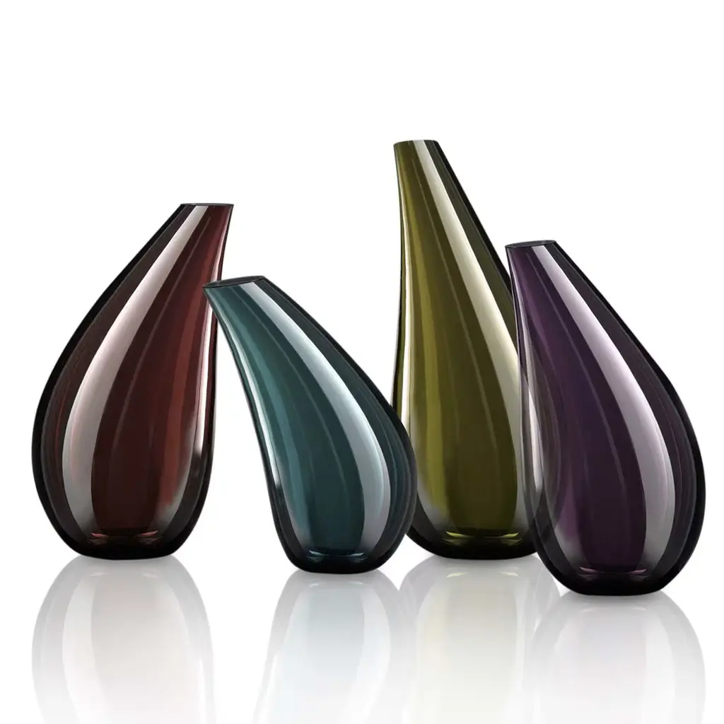 From the Avena Collection, this bold Murano glass vase will add a touch of minimalist elegance to any interior decor. Handcrafted by master glassmakers, layers of purple and steel grey-colored glass are combined to create a stunning mirrored finish. The vase is molded into a delicately curved bottle shape, the tapered neck and rounded bottom evoking the natural contours of an eggplant. Best showcased alongside other piece from the same collection available in different sizes and colors for a cohesive and impressive aesthetic.