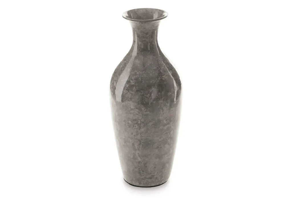 Featuring a moody black finish with blue abstract details, our Avi vase offers the perfect contrast to a neutral décor color palette. Both the 16-inch and 22-inch vases are crafted from metal and feature uniquely sculptural silhouettes with a wide mouth, perfect for holding branches and stems. Please select your size before adding to cart.