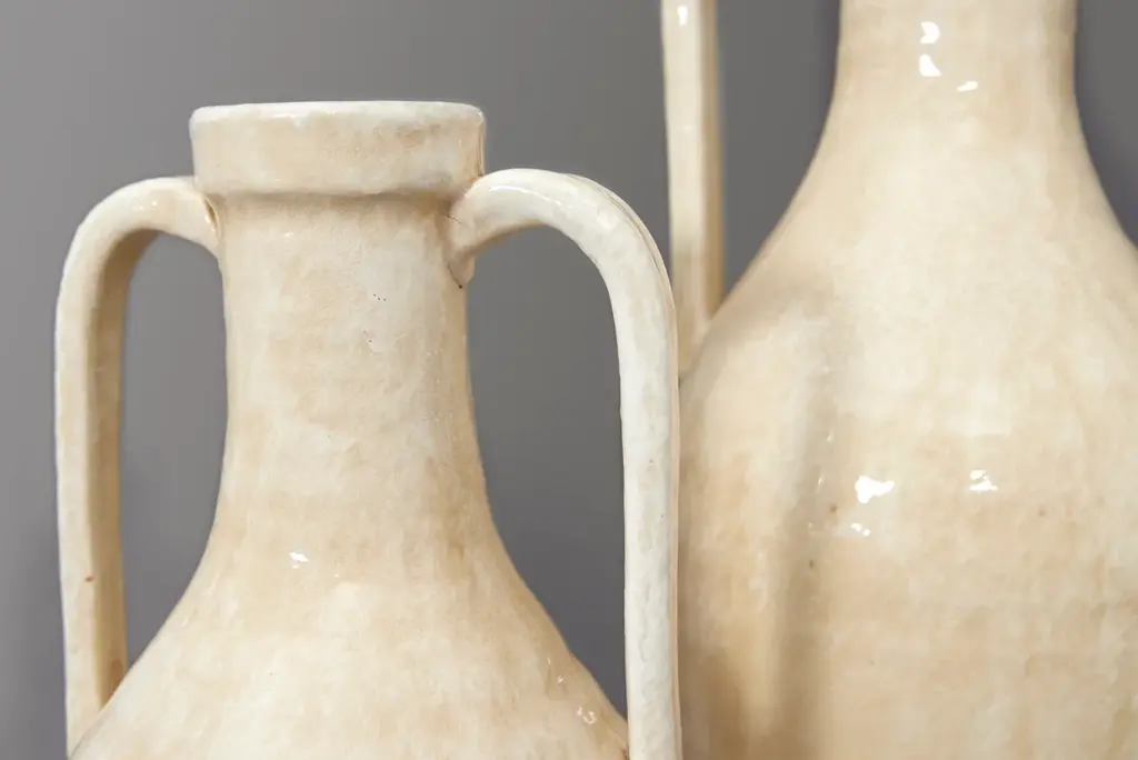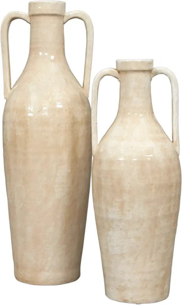Inspired by villas of the Italian countryside, our Axel terracotta vases boast a rustic, handled design with a distressed cream finish. Oversized in 20 and 25-inch silhouettes, these pieces play best atop your mantel or dining table. Please select your size before adding to cart.