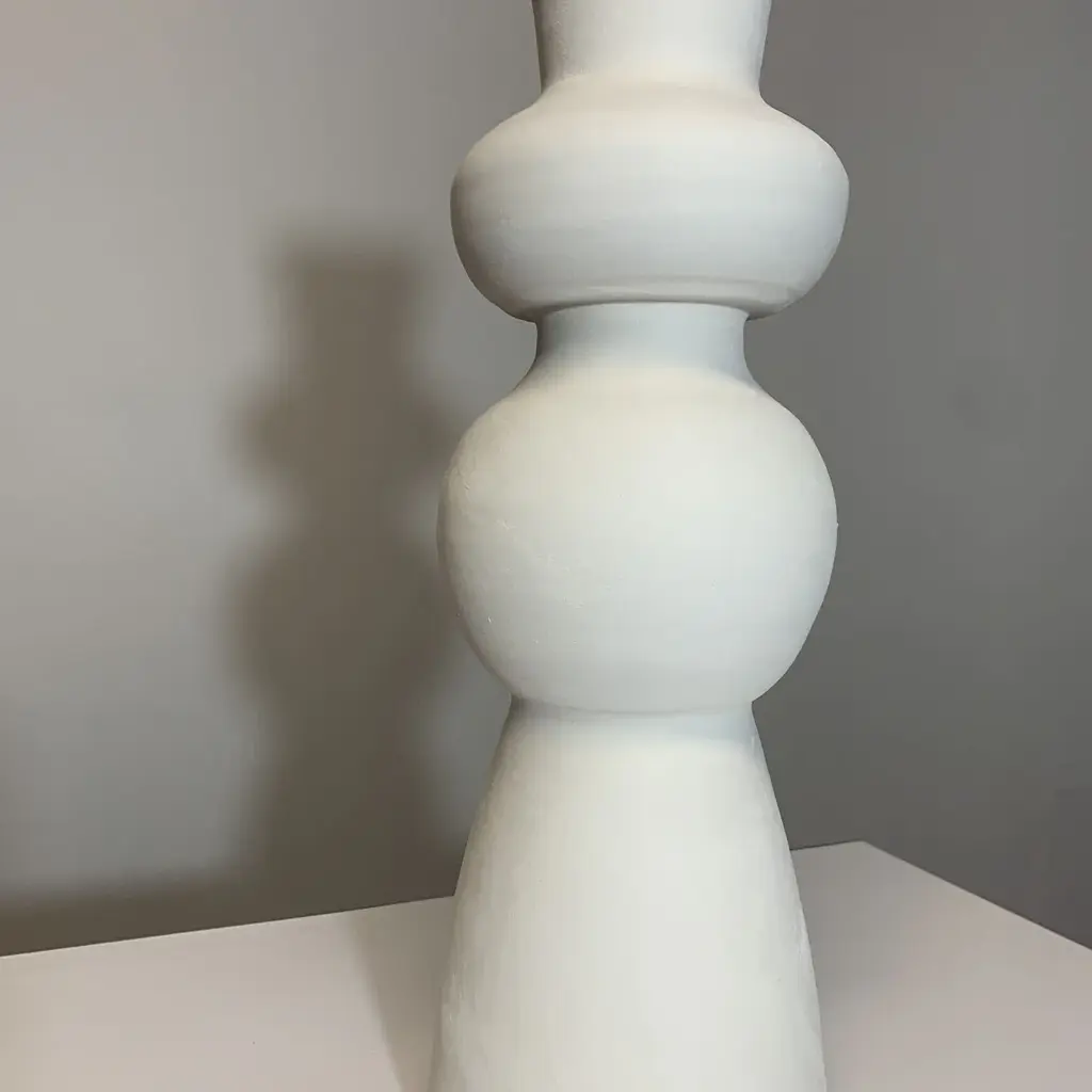The B22 white ceramic vase from the "Raw" Collection is entirely handcrafted without molds, combining multiple hand-thrown volumes to create a unique and dynamic silhouette. Inspired by fashion design, where geometric shapes define the structure of an entire collection, this vase brings together pure materiality and unexpected forms. Its raw white ceramic exterior is paired with a glazed interior, highlighting a striking contrast between texture and finish. Each piece is one of a kind, embodying a contemporary vision of ceramic craftsmanship and offering an exceptional and sculptural presence to any space.