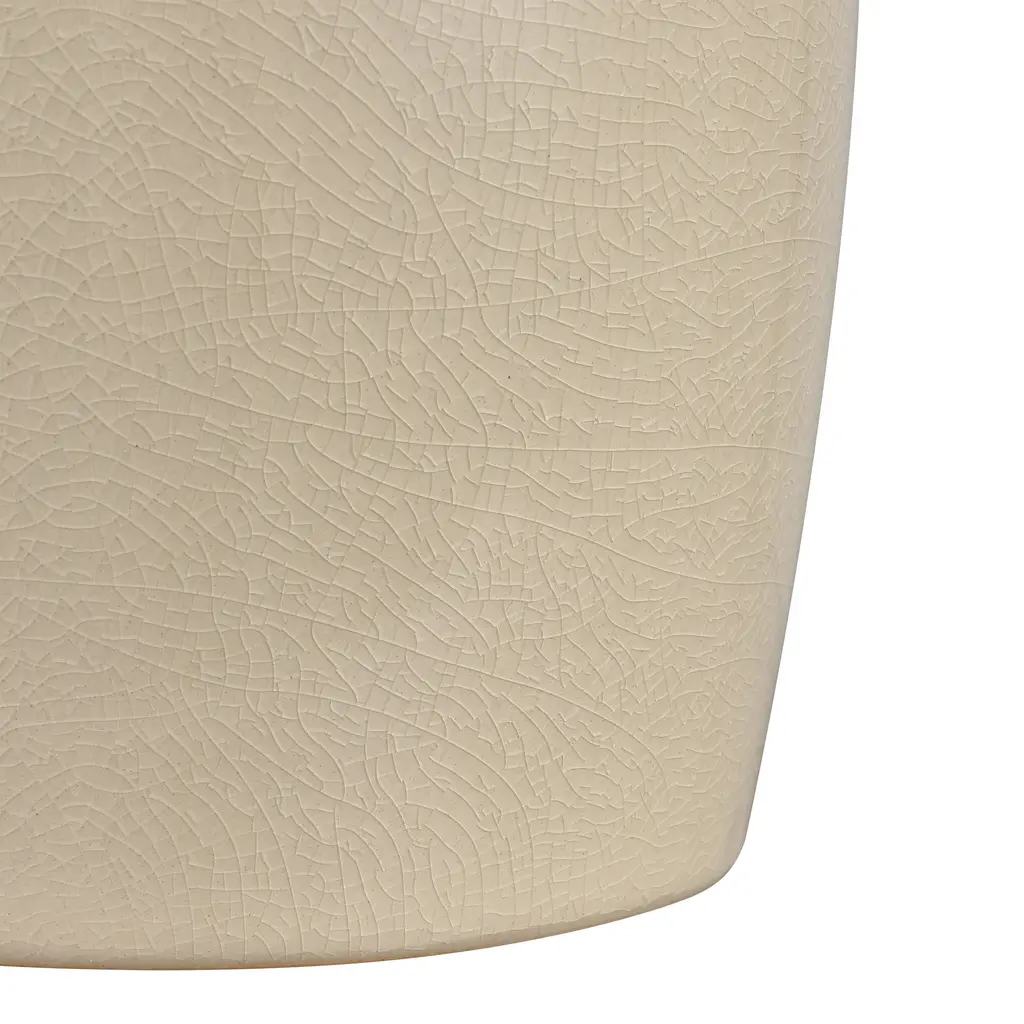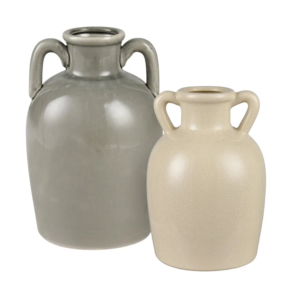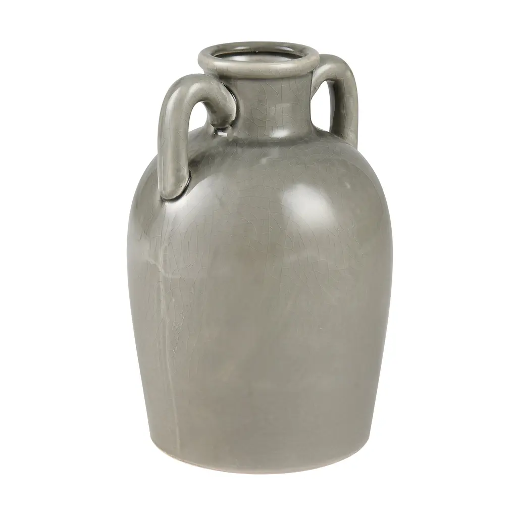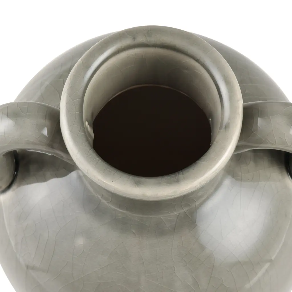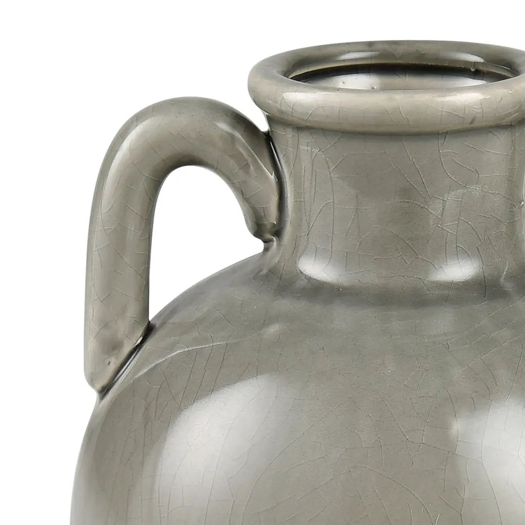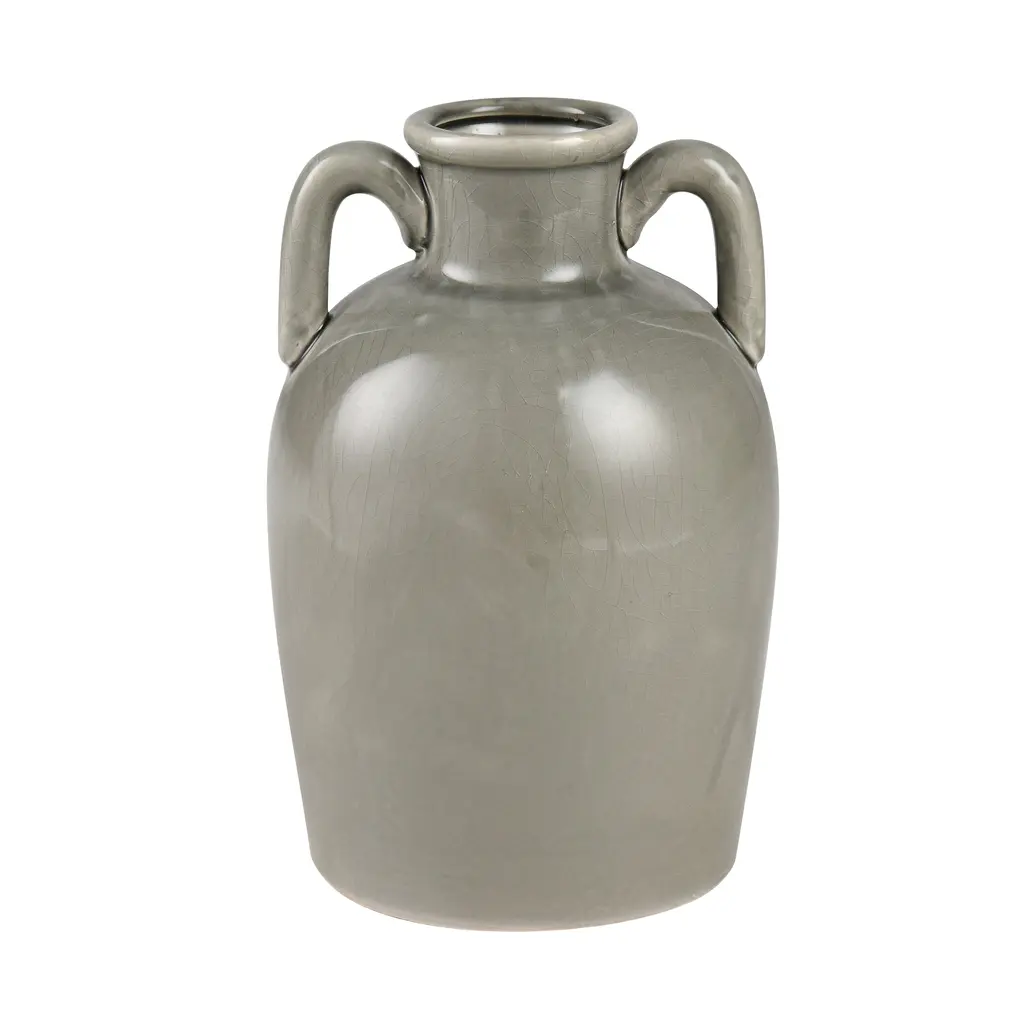 The Babin Small Vase is a modern take on a traditional Greek amphora-style vase, with a rounded body and two handles which connect at the body and at the neck. The earthenware vase is glazed in warm ivory.