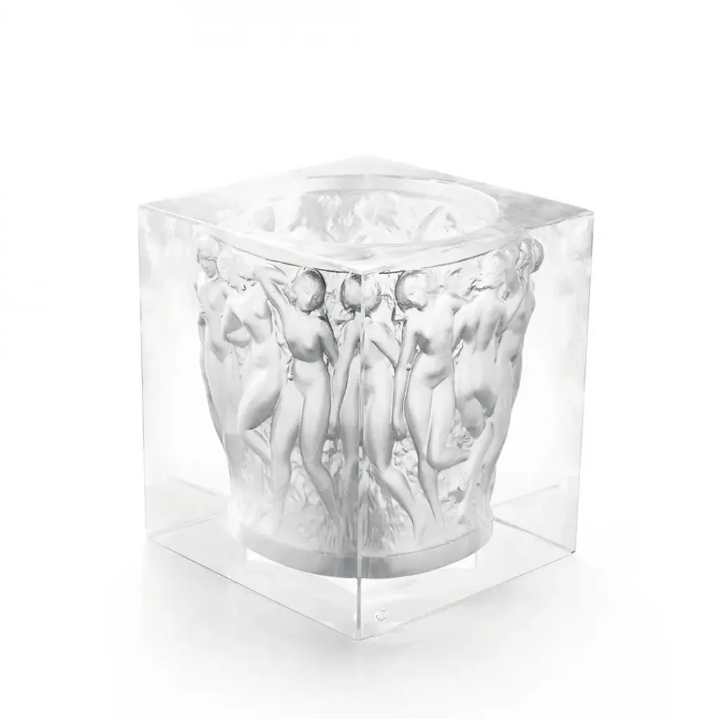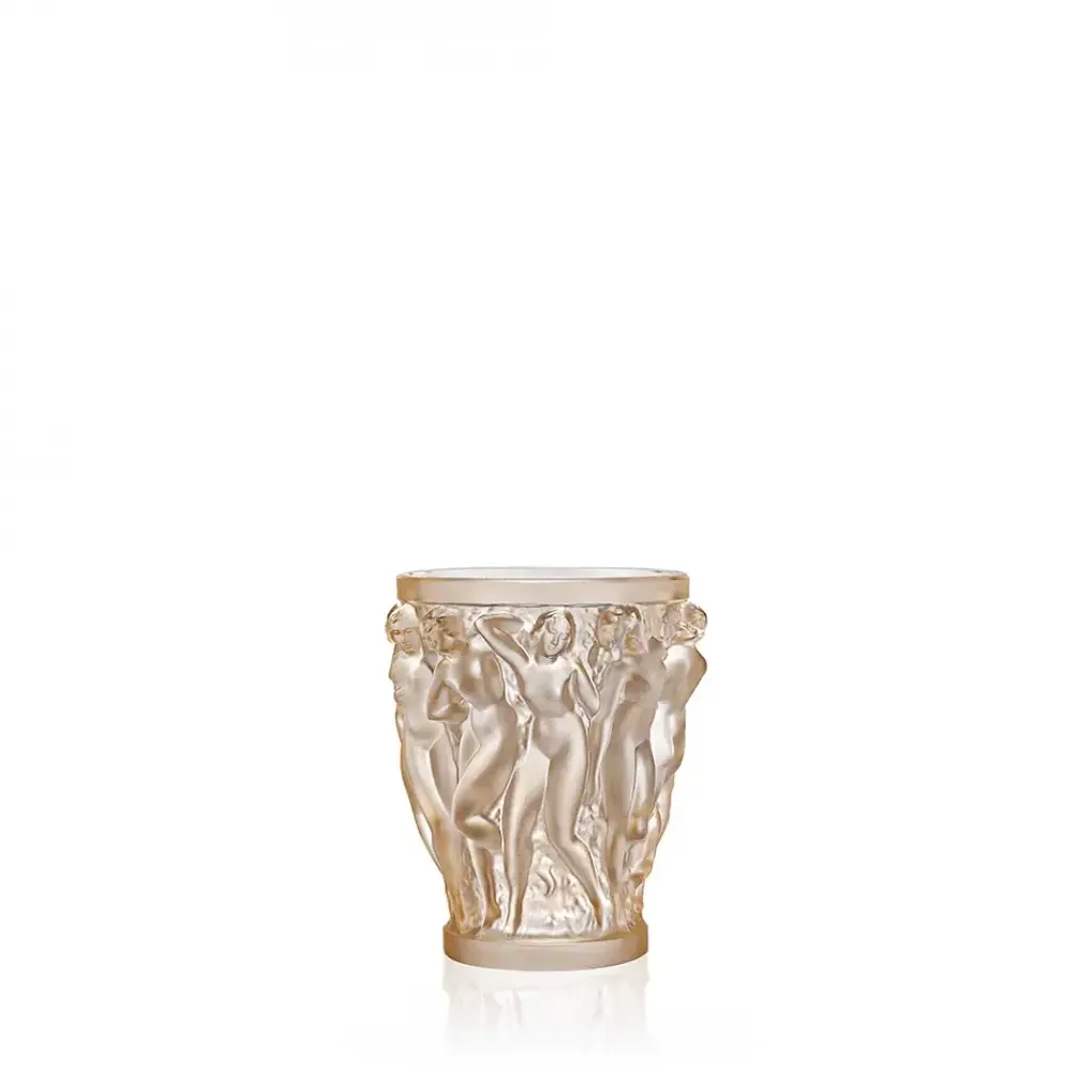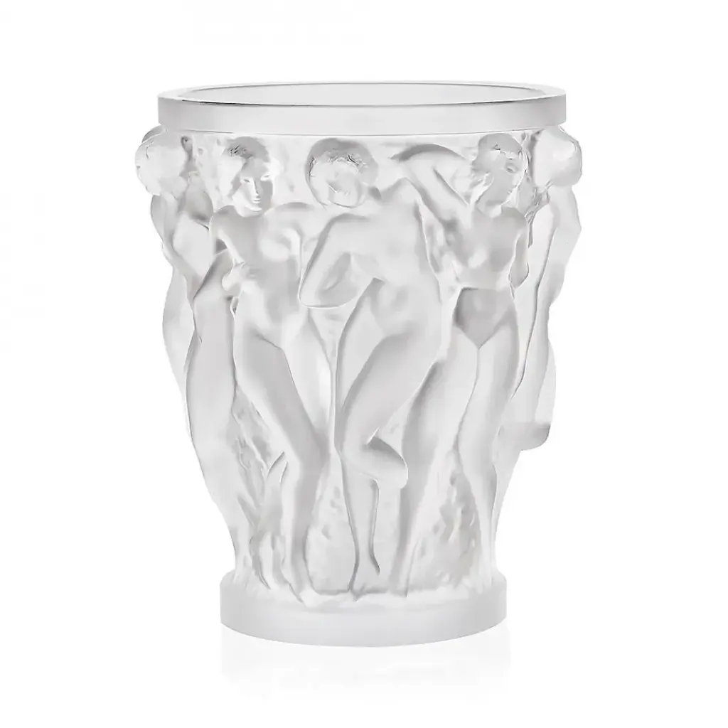 In 1927, René LALIQUE’s boundless imagination and creative genius lead to the creation of the Bacchantes vase. As a splendid insolent and a troubling sensuality, the young priestess of Bacchus offered their beauty and their curves. Today this majestic ode to femininity is reinterpreted in the small size vase, this round of sculptural nudes is an emblematic style of Lalique. The satined crystal recalls the smoothness of the skin texture while the play of light breathes life and movement to the piece, shaped by the hand of the artist. Trained as a jeweler at the Ecole des Arts Decoratifs in Paris in the late 1880's, Rene Lalique gained recognition as an independent designer for some of the era's great jewelry houses including Cartier and Boucheron. Eventually, he turned to glassmaking, and his techniques were a triumph for the Art Deco movement. Every piece of Lalique is finely detailed and produced by hand in Alsace, France.