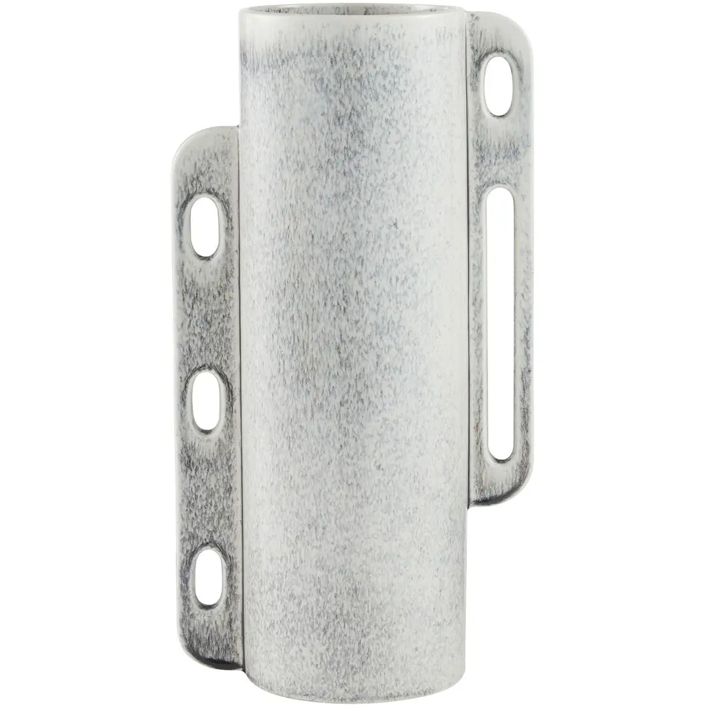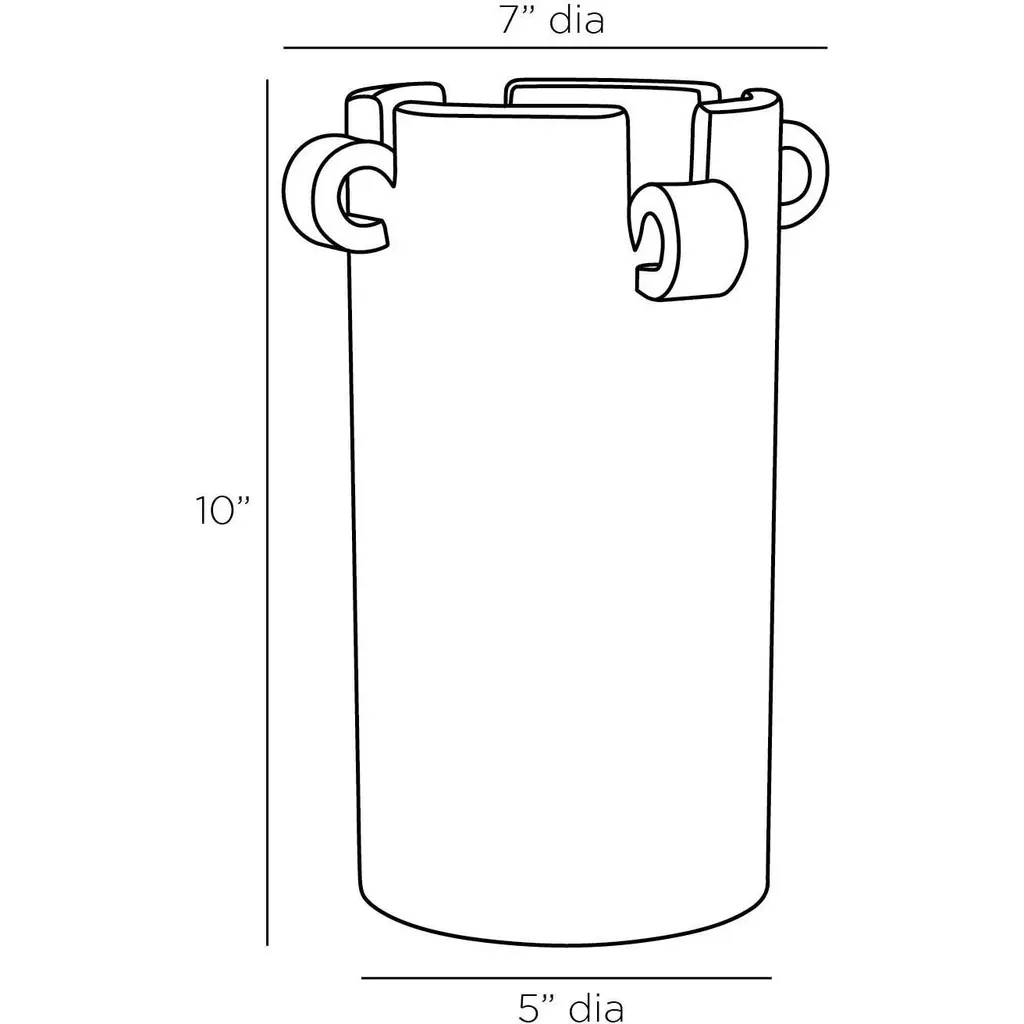 A terracotta vase is finished with with curled edges of clay to highlight its handcrafted feel. Glazed in a sheer shade of sky. Finish will vary.