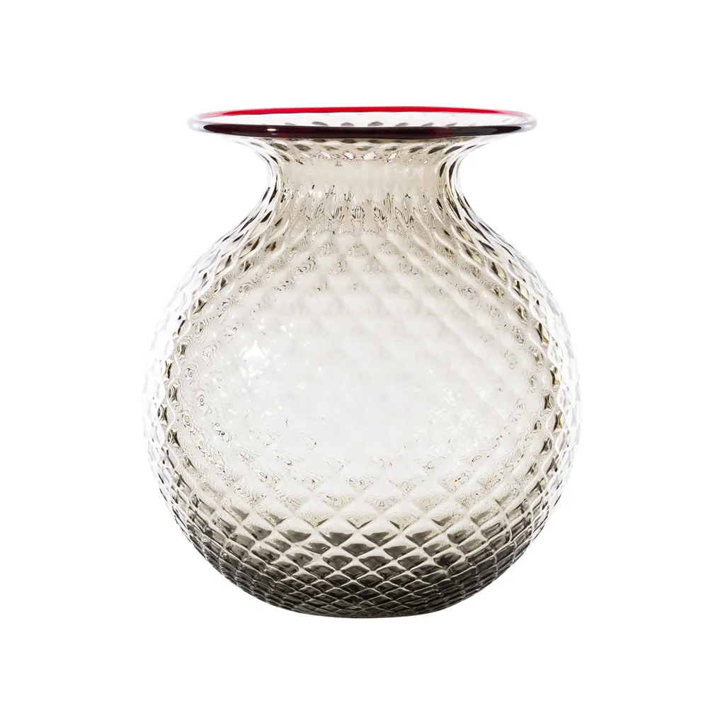 Indulge in the sophistication and luxury of the Balloton Fiori Vase from Venini. This artisanal vase boasts a unique matelassé effect, created through a delicate glass blowing process. Perfect for displaying larger floral arrangements, it adds an elegant touch to any room. Its blown glass design and intricate details make it a truly exquisite piece. Highlights