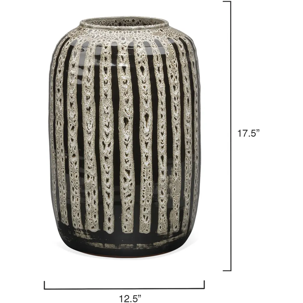 Neutral stripes of beige and black adorn the large scale of the Barnaby vase creating a beautiful mix of striking statement in neutral finishes.