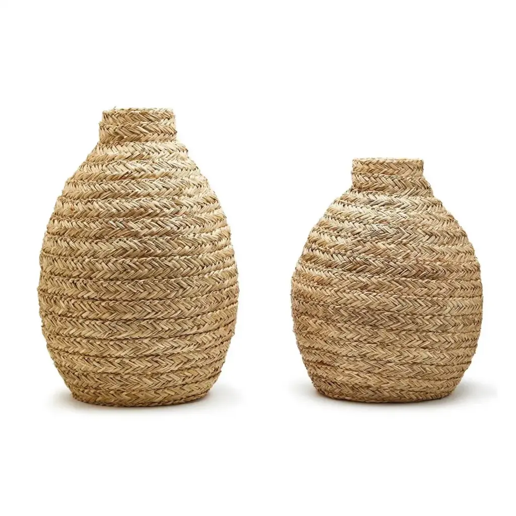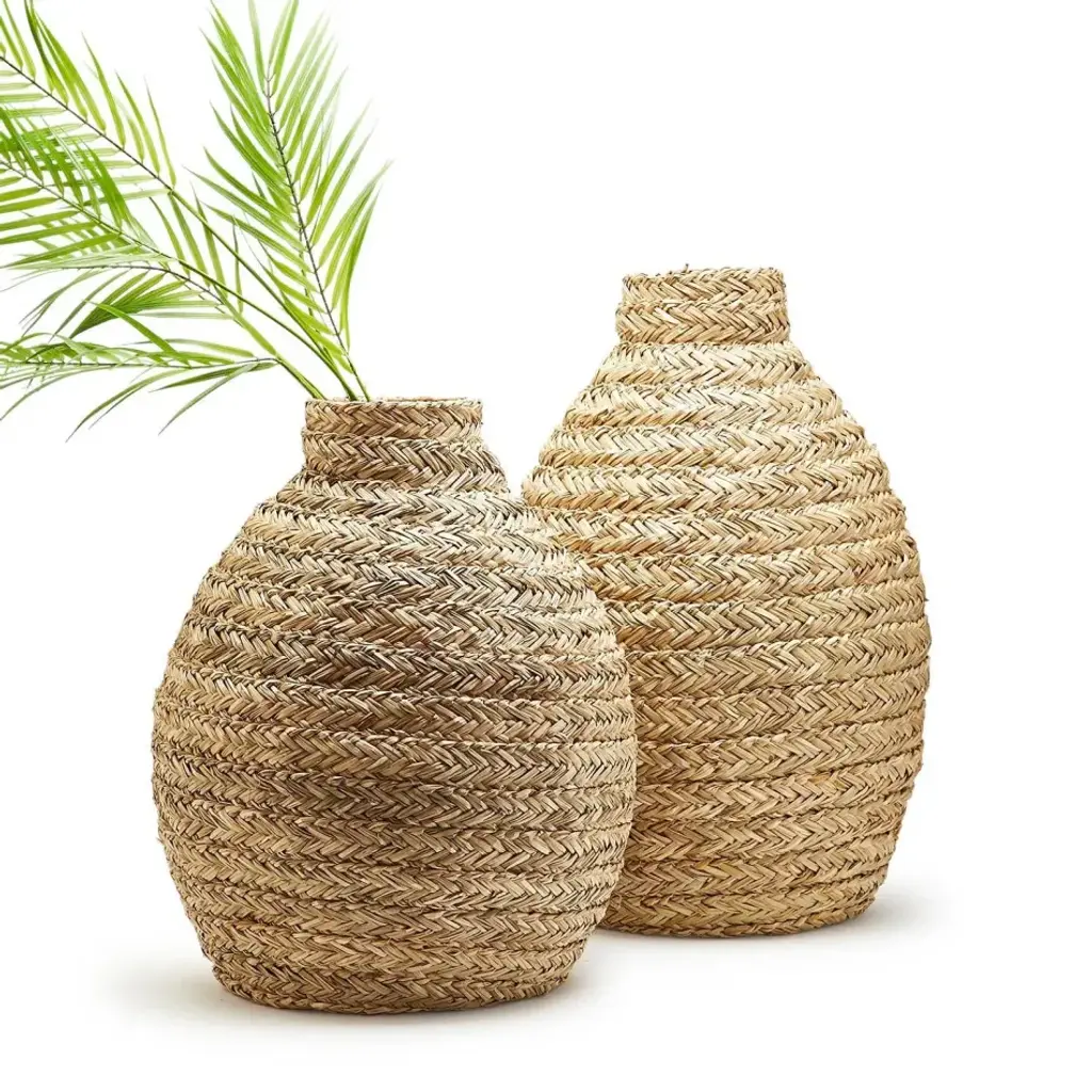 These beautifully crafted vases combine the timeless charm of traditional basketweave design with the elegance of bottle-shaped forms, creating a captivating ensemble that complements any space. Whether placed individually or grouped together, these vases are sure to add a touch of sophistication and nature-inspired beauty to your living spaces.