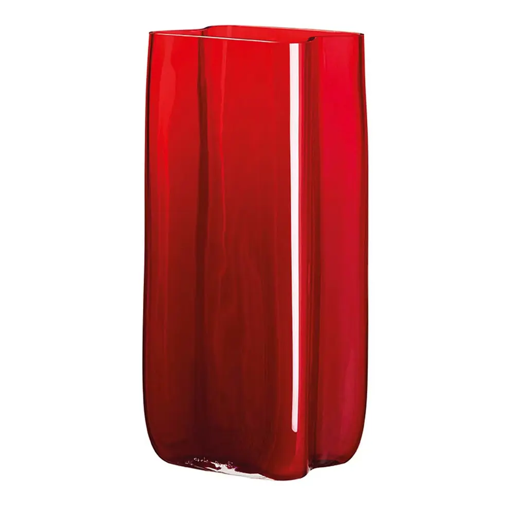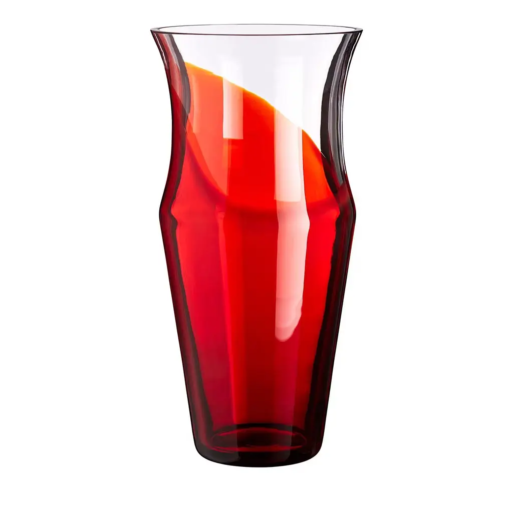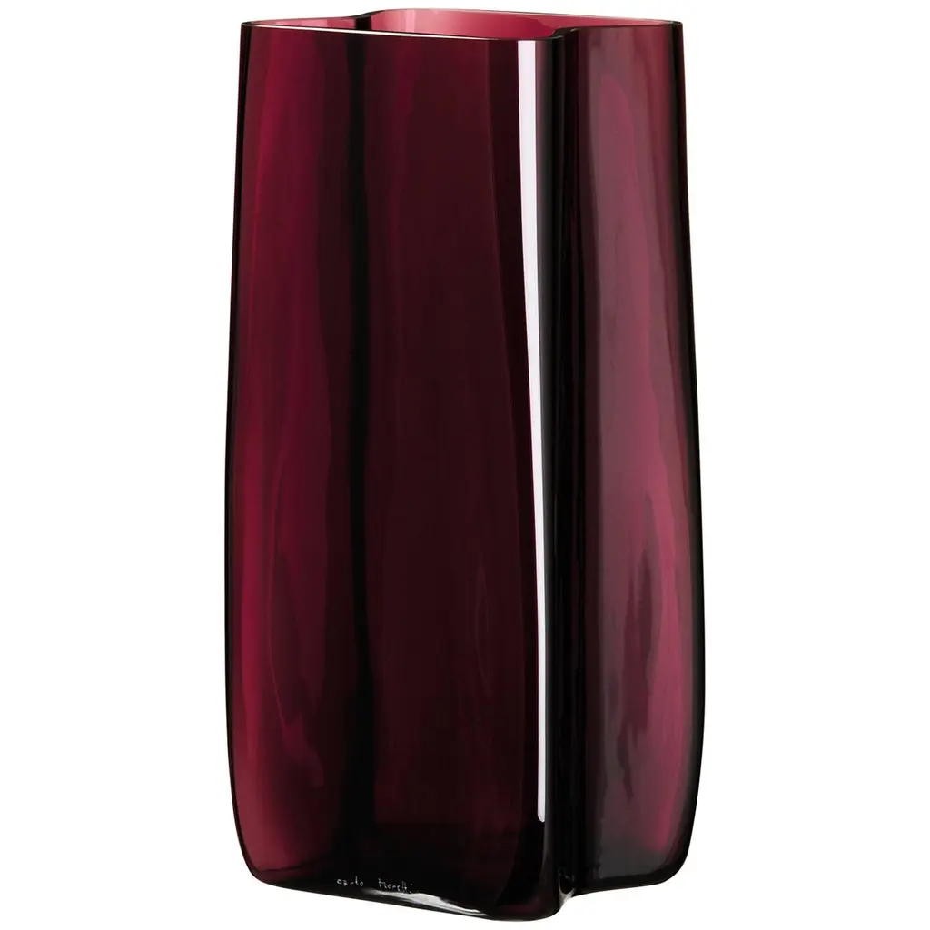 The geometry of a hexagon reinterpreted in a creative and irregular perspective distinguishes the artful personality of this vase, deftly mouth-blown from Murano crystal and minutely finished by hand. The clean whiteness of the inner surface is counterbalanced by the delightful, shaded tone of plum accenting the exterior.
