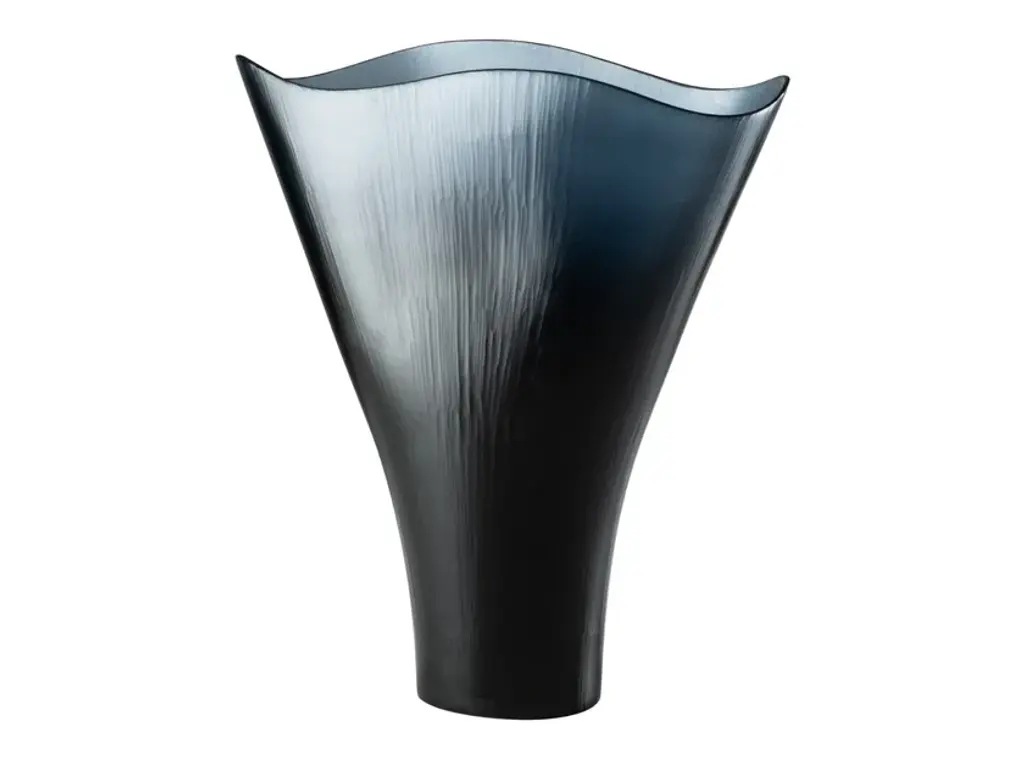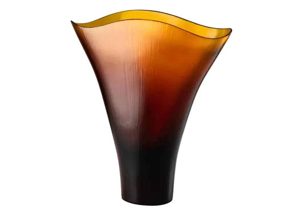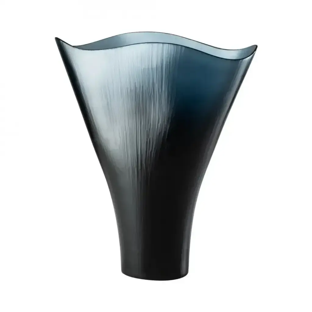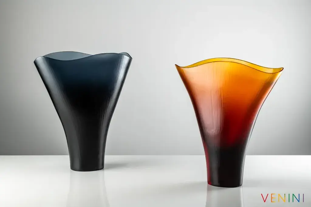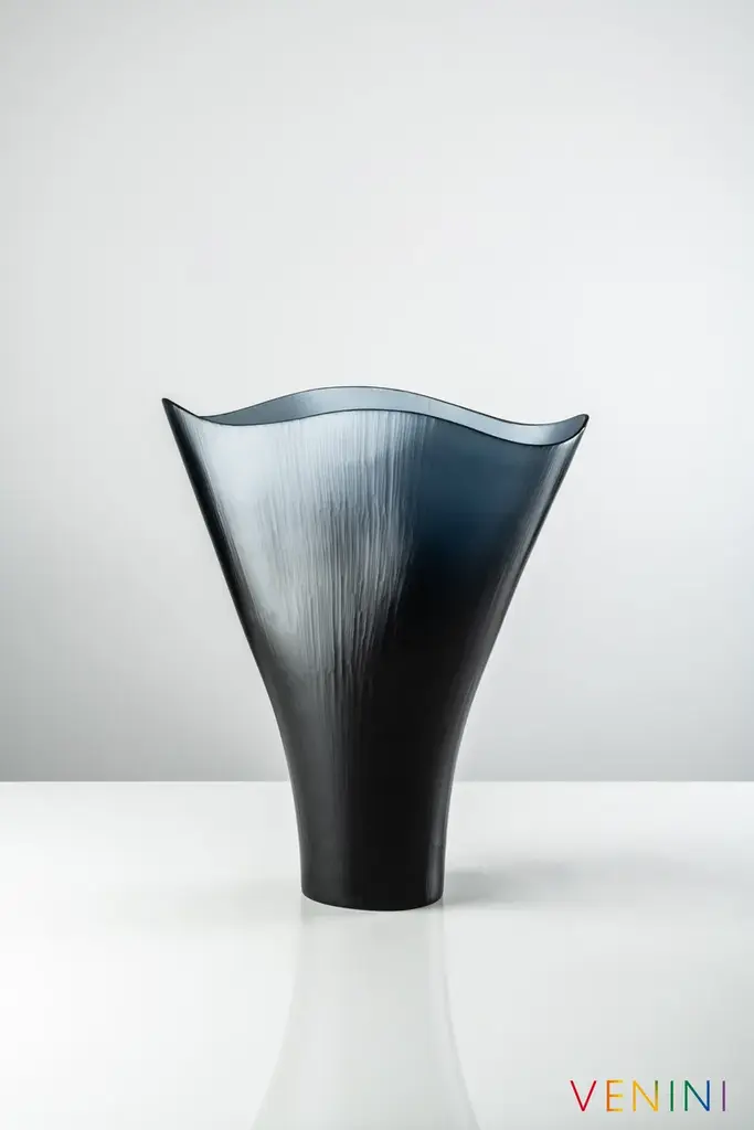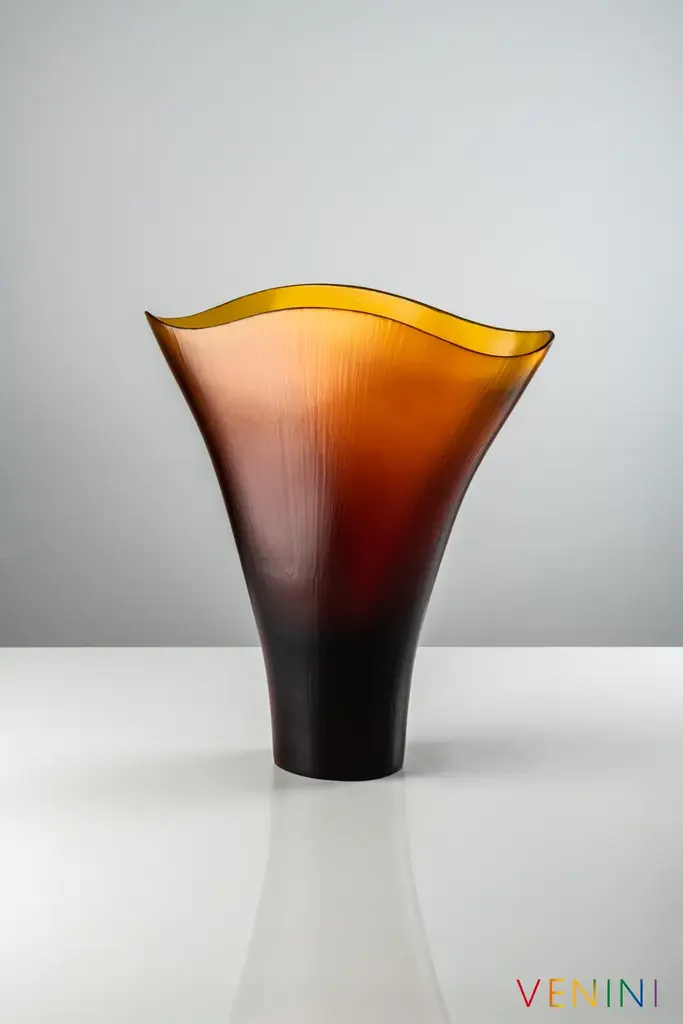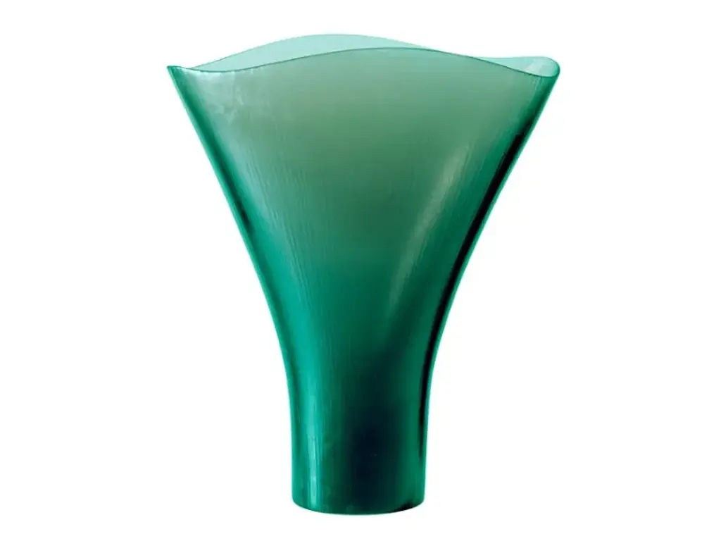 Battuti is a vase made of blown, beaten glass available in different colors.Colors: Rio Green, Powder pink, Aquamarine - Yearly numbered editionOn request CrystalColors Spring Summer 2020: Grapes, Amber - Limited edition of 99 works eachShapes with undulating edges stretch upwards from a solid blown glass base. The transparencies are given substance by the lines and marks of the grinding wheels used by Venini’s master glass makers.Edition numbered by year
