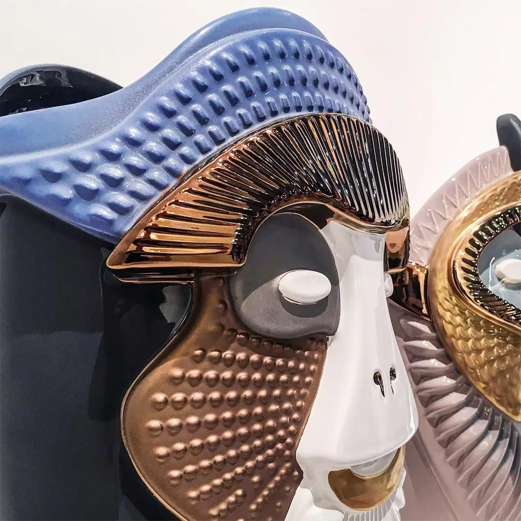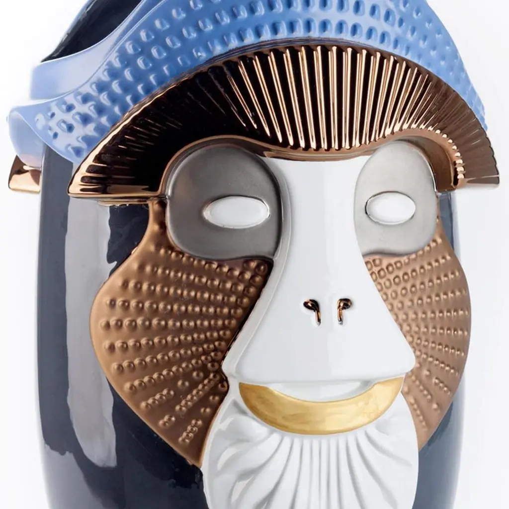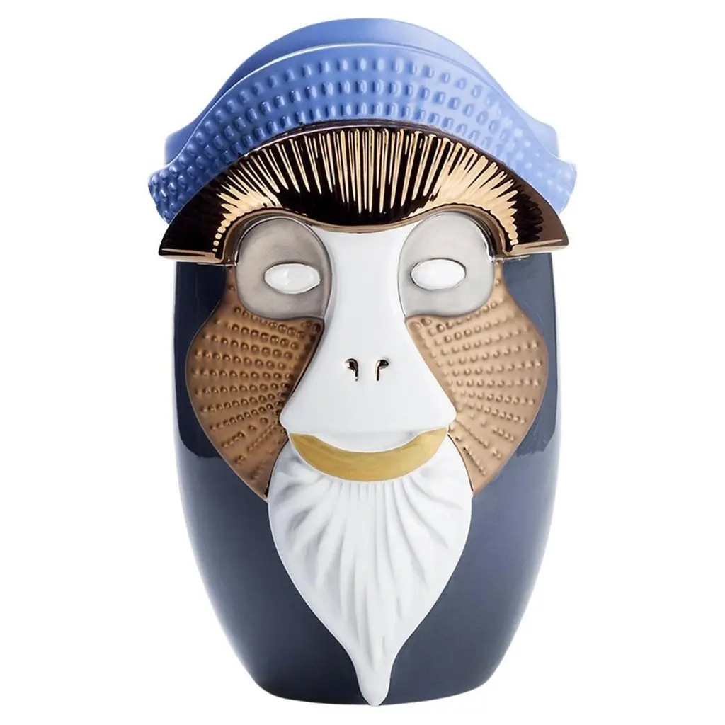 Vase Bearded Ape all in ceramic with colored enamels and precious metals.