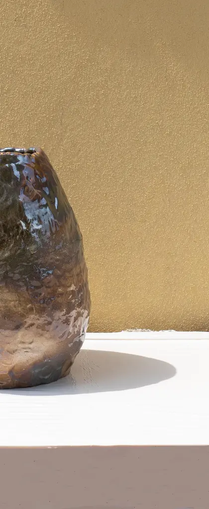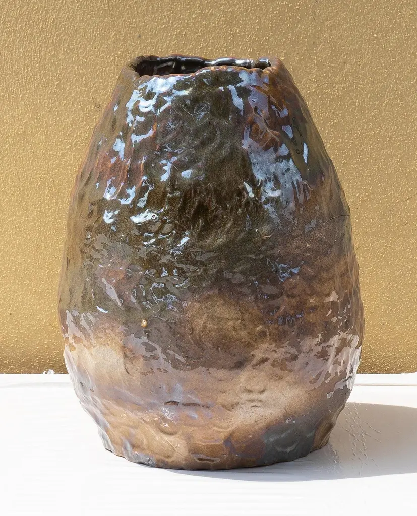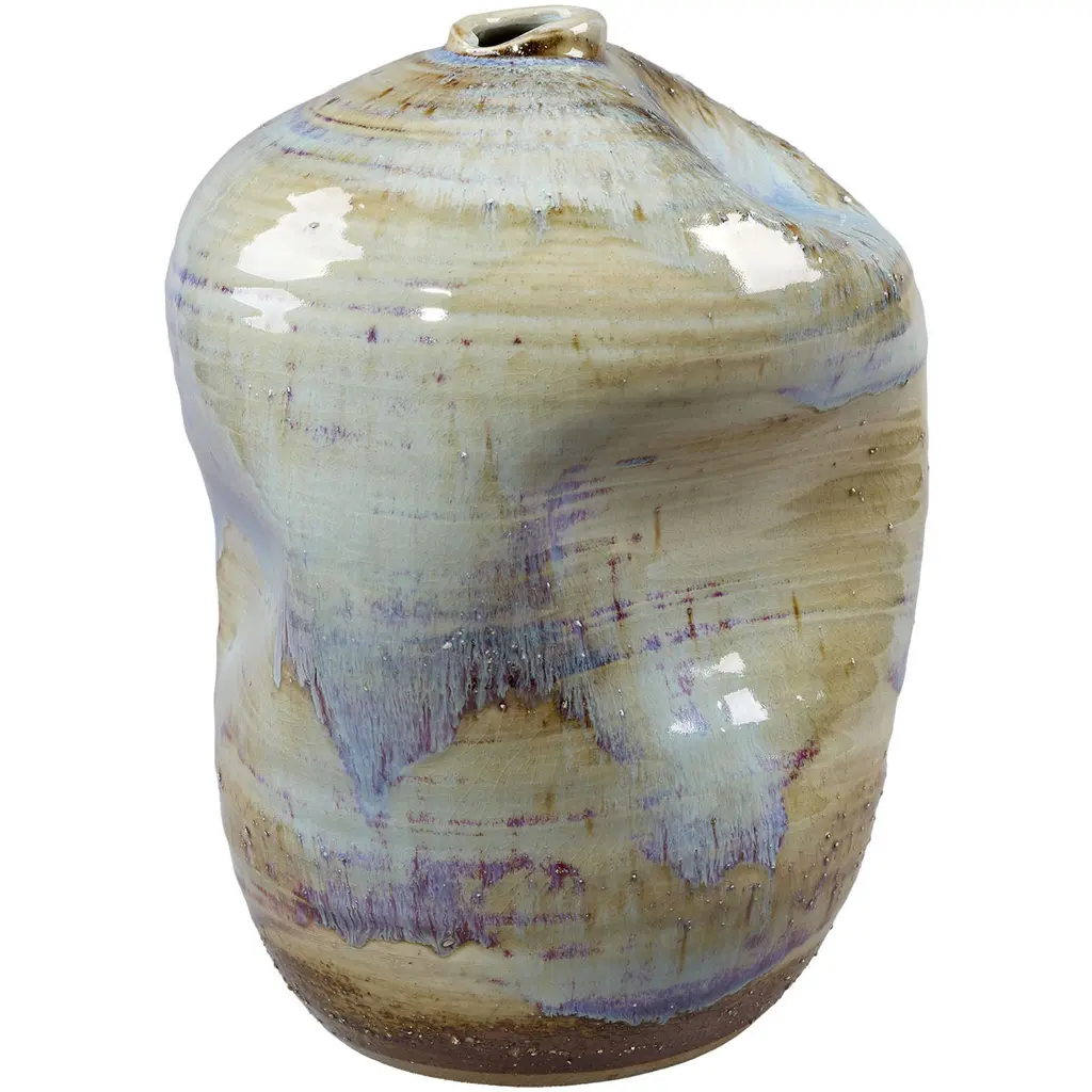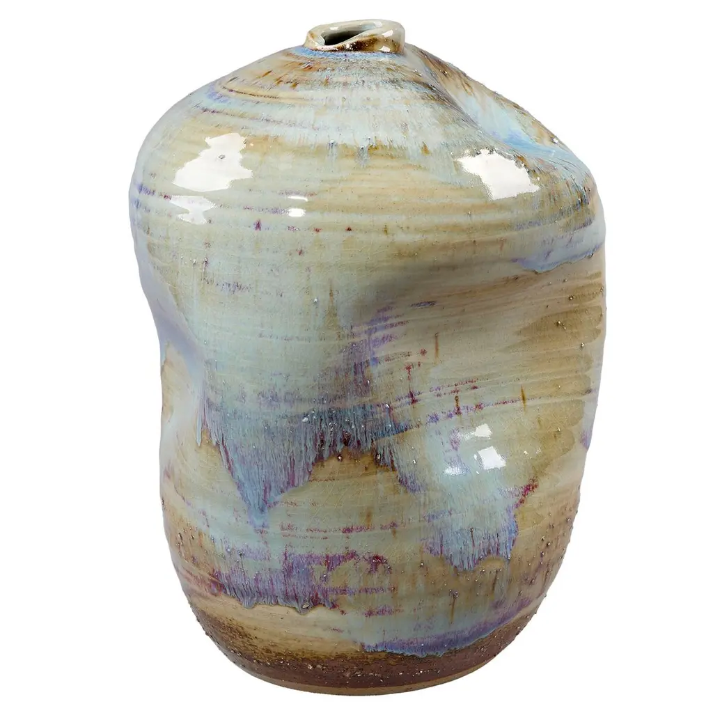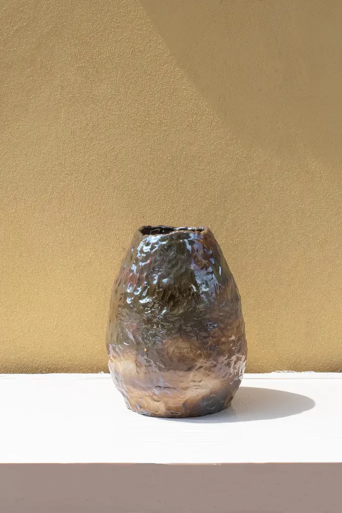 Beige Iridescent vase by Daniele GiannettiDimensions: Ø 34 x H 26 cm.Materials: Glazed terracotta. All pieces are made in terracotta from Montelupo, only fired once, then colored by Daniele Giannetti with a white acrylic base, and then a mixture of acrylic medium, water, and pigments. All vases are rigorously made by hand, without the help of any tool, in a way to express the primary connection between matter, which works a signifier and the deeper understanding of the relationship between humans and nature. These handmade objects subsequently become a new starting point for research into colors and pigments, using traditional materials to create new techniques.Daniele Giannetti is an artist with a background in product design and interior design.