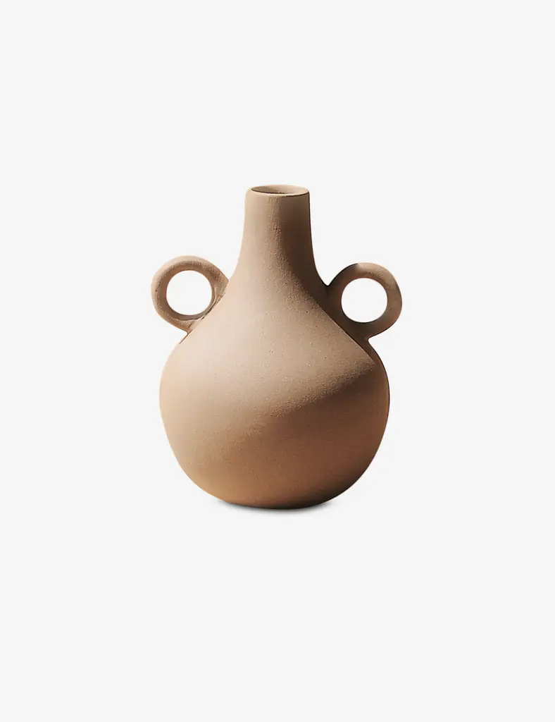 The Belly Harapan vase's timeless profile with ring handles inspires a timeless look and feel. This sculptural accent is perfect for dried stem arrangements, layering grounding texture and an earthy hue into your space. Powered by People works with makers from all over the world to bring small-batch, responsibly made goods to marketOsmos Studio blends inspiration from Japanese and Scandinavian design in its offering of simply stunning ceramic objects.