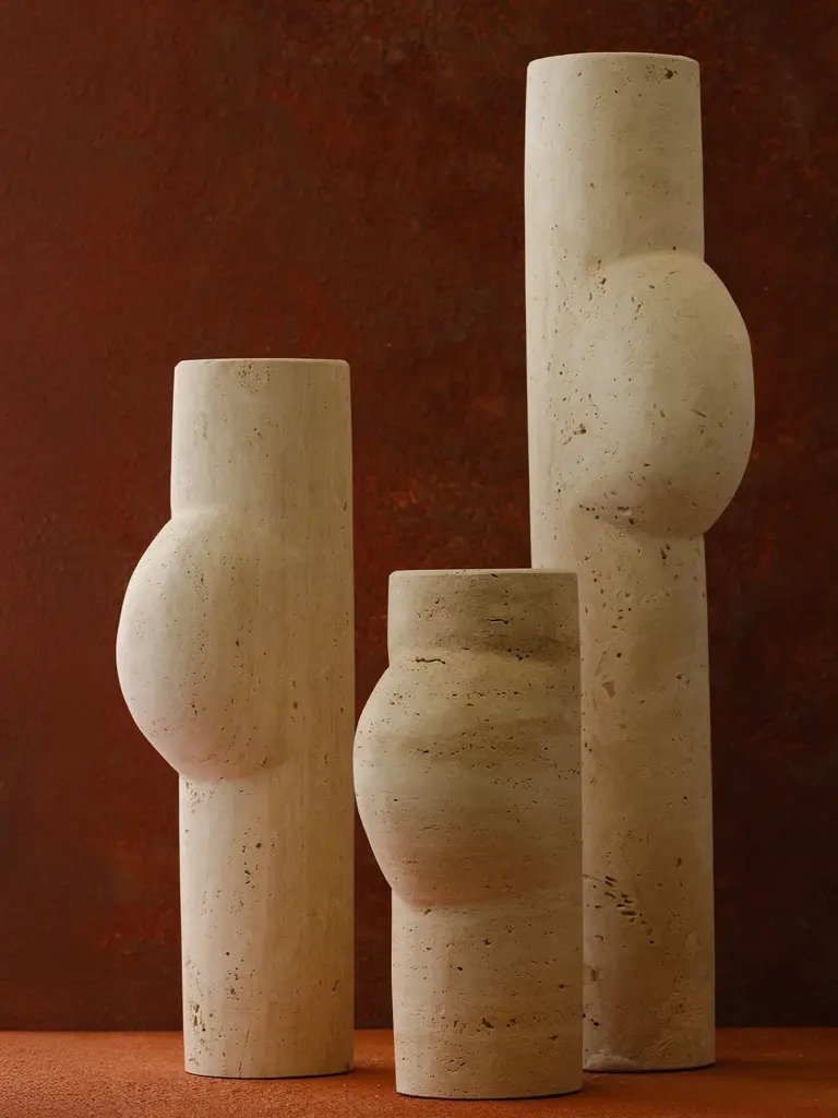 Belly Set Of Three Travertine Sculptural Vase Set, Large