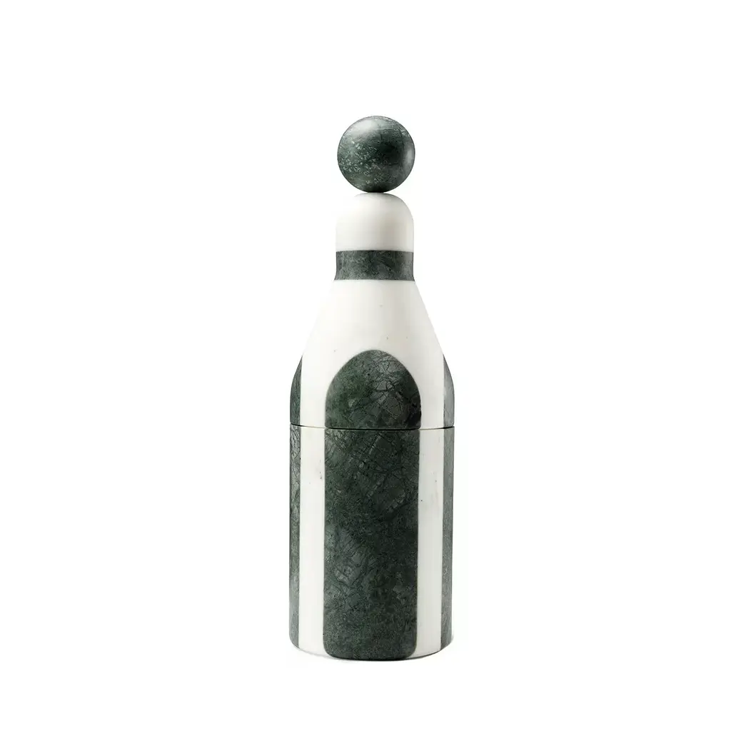 The Bengali Vase is a chic, stylish accent piece that showcases a stunning variety of textures. Crafted from metal and finished in antique brass, the piece features wavy striations across the body. A gorgeous tiger’s eye stone is affixed to a rounded metal ornament at the top of the piece, completing the look.