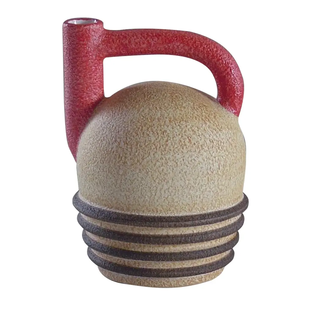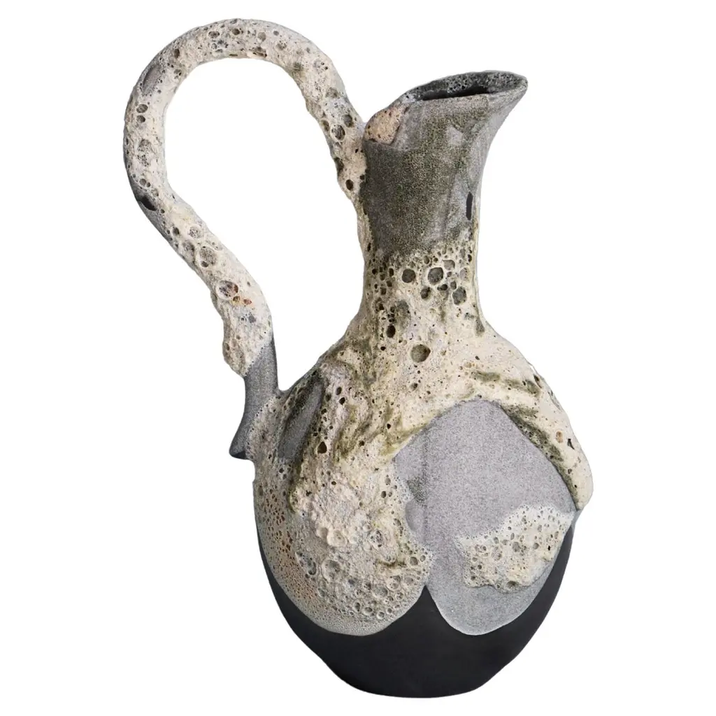 The Bernard Medium Vase has an asymmetrical profile that is a reinterpretation of a 1940s vase. This dynamic era in design is reflected in the curvature and placement of the handle and the dark brown glazing that drips artistically from the top. Made of terracotta, the brown and beige vase reads as a sculpture when there are no flowers blooming in it.