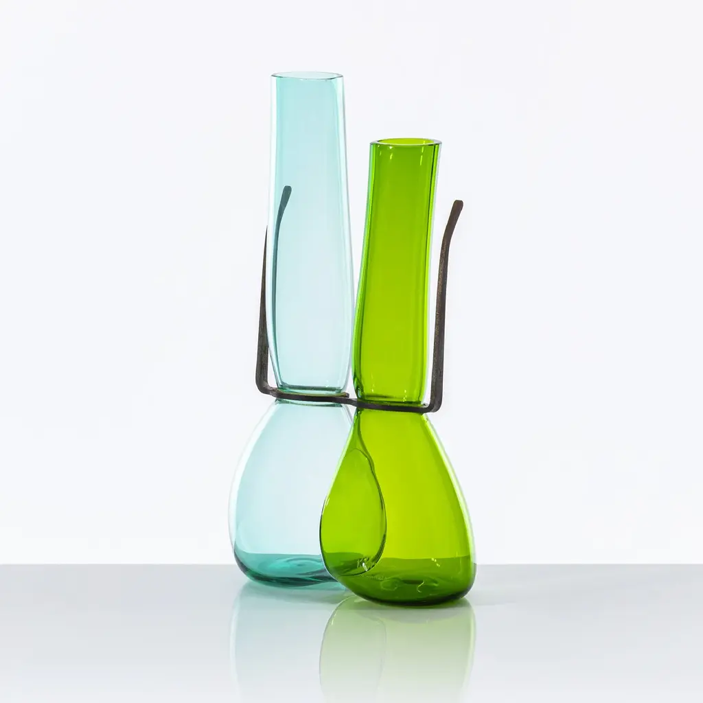 Discover the exceptional craftsmanship and design of Bespectabled Double Glass Vase. Created by renowned artist Ron Arad, these glasses were carefully crafted by Venini's master glass blowers, resulting in a product that exceeds expectations. Experience the emotion of the furnace and indulge in the superior quality of these glasses. Where are they? Right at your fingertips.