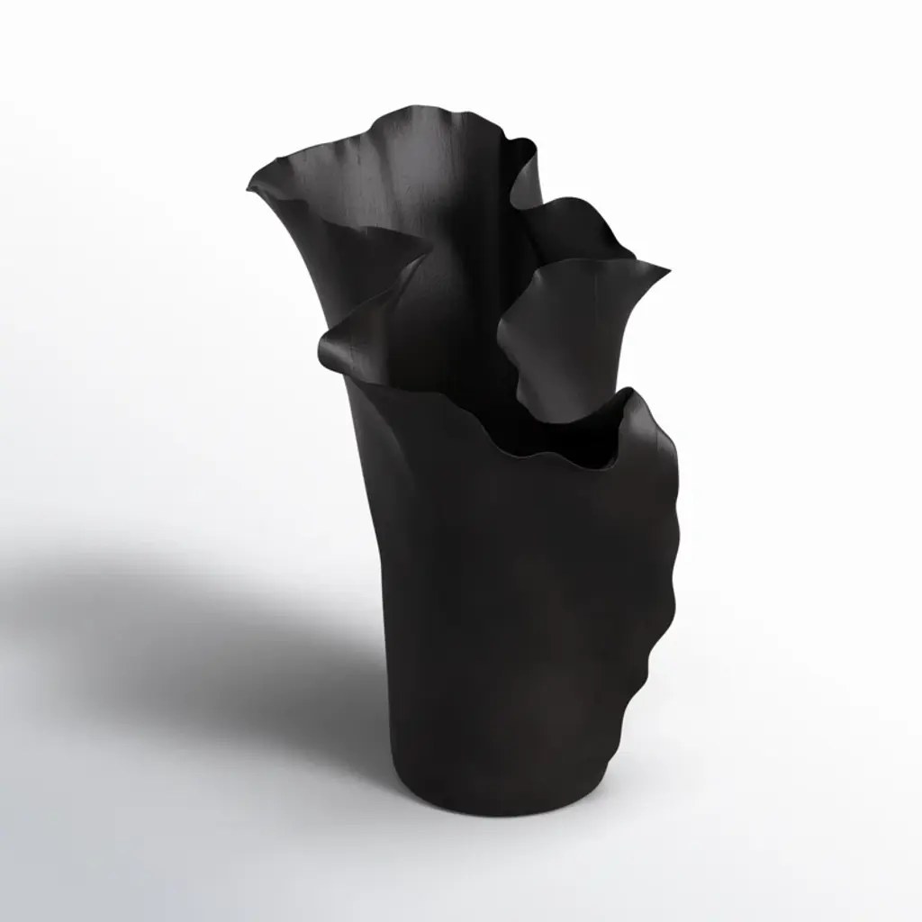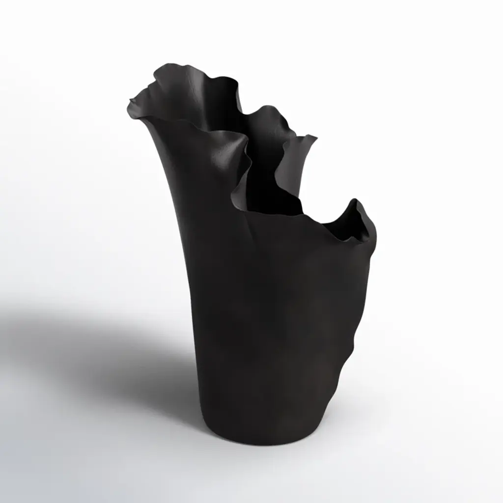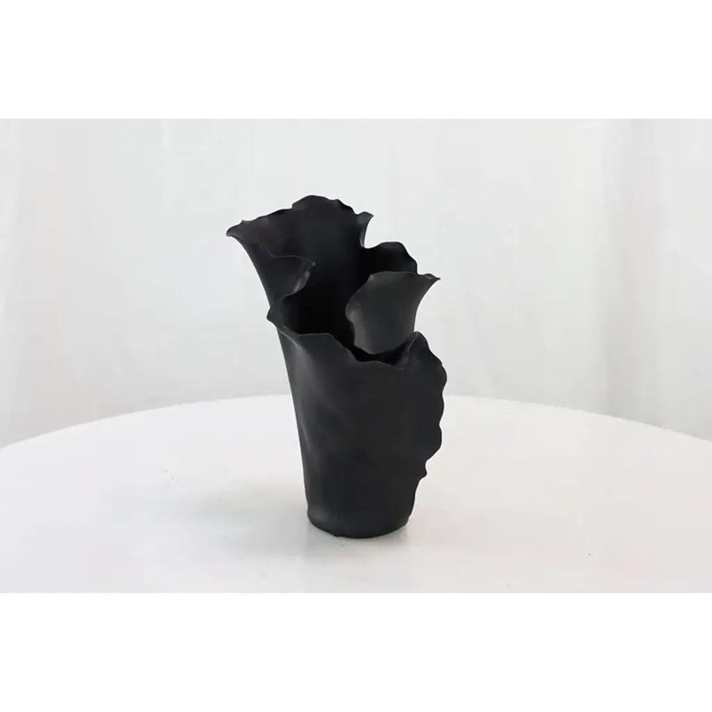 Black centerpiece vase would be perfect in a living room or as statement piece on a mantelpiece. Designed with felt or rubber stoppers at the base that prevent scratching furniture and table tops, as well as sliding around. This item ships in 1 carton. Suitable for indoor use only. This item ships fully assembled in one piece. This is a single black colored vase. Modern style. Vase has a 2.20 in mouth opening.