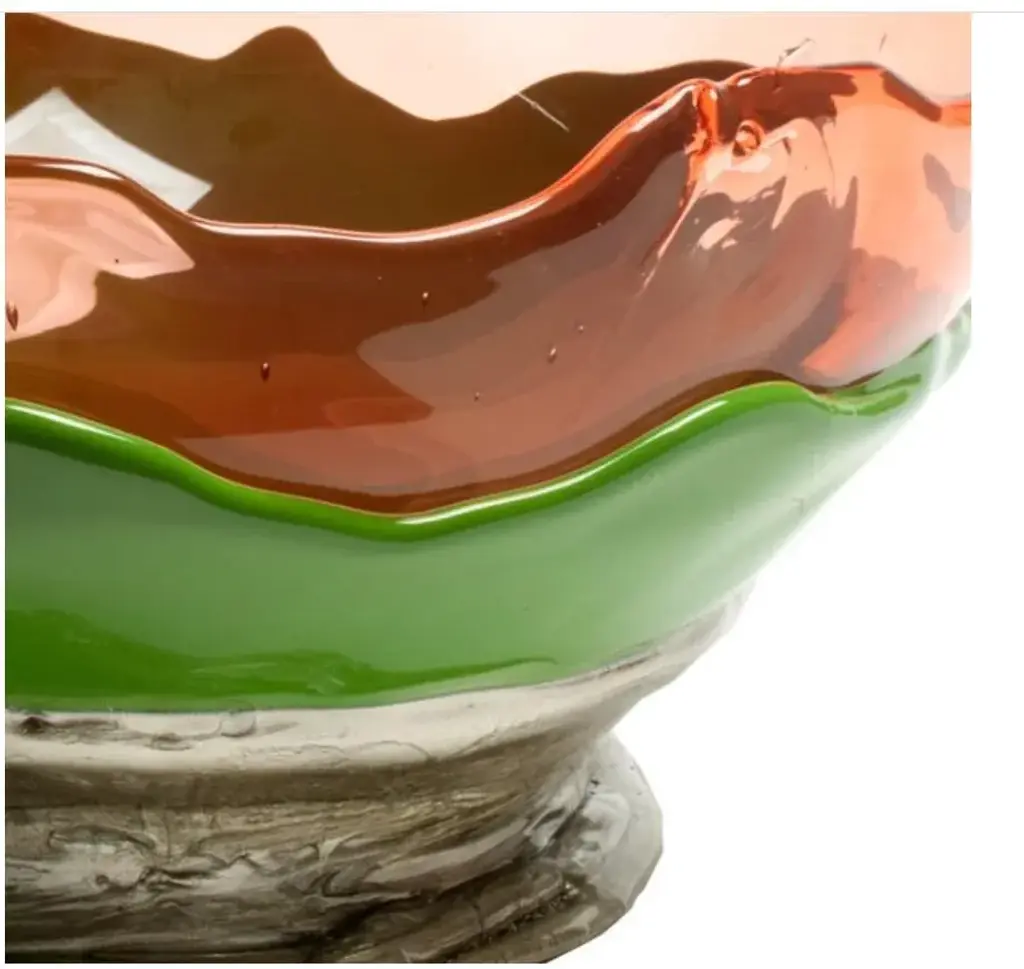 Big Collina Vase Extra Colour, Fish Design By Gaetano Pesce, Clear Ruby, Matt Green And Bronze