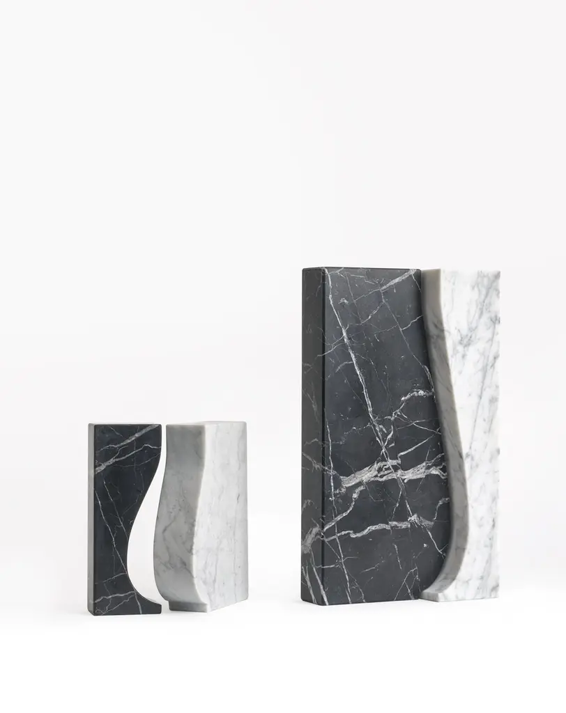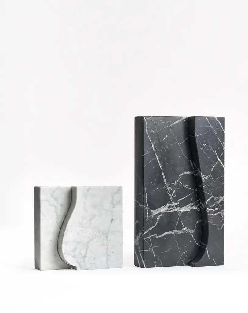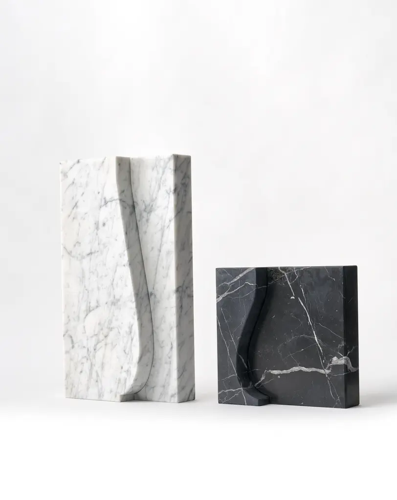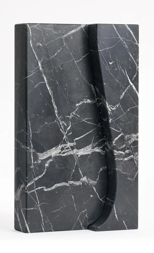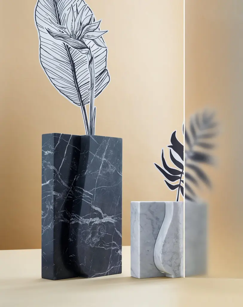 Big Recisi marble vase - Moreno RattiDimensions: D 5 x W 20 x H 37 cmMaterials: Nero Marquina marble.Available in other size and marble.The memory of a children's game, like play with simple shape cut on paper.The magic of the discovery of the form is transferred into the marble with waterjet technology, a subtraction and recomposition game. The shape as cutting and restitution.Moreno Ratti"When I was young I played with pieces of marble, like now.There are a lot of marble waste around me, I'm searching new way to use it.I was born in Carrara in 1982. From 2013 I devoted myself to design, specializing in the context of the marble design.".