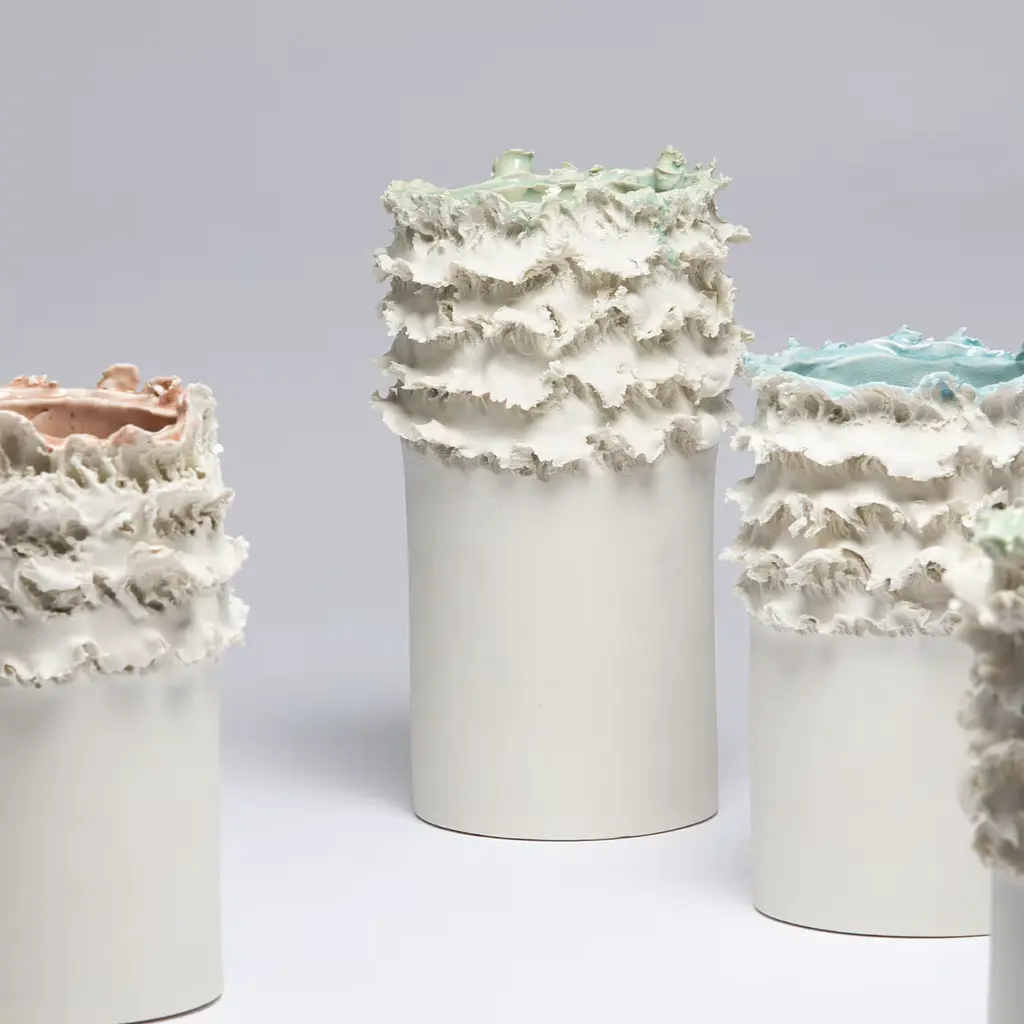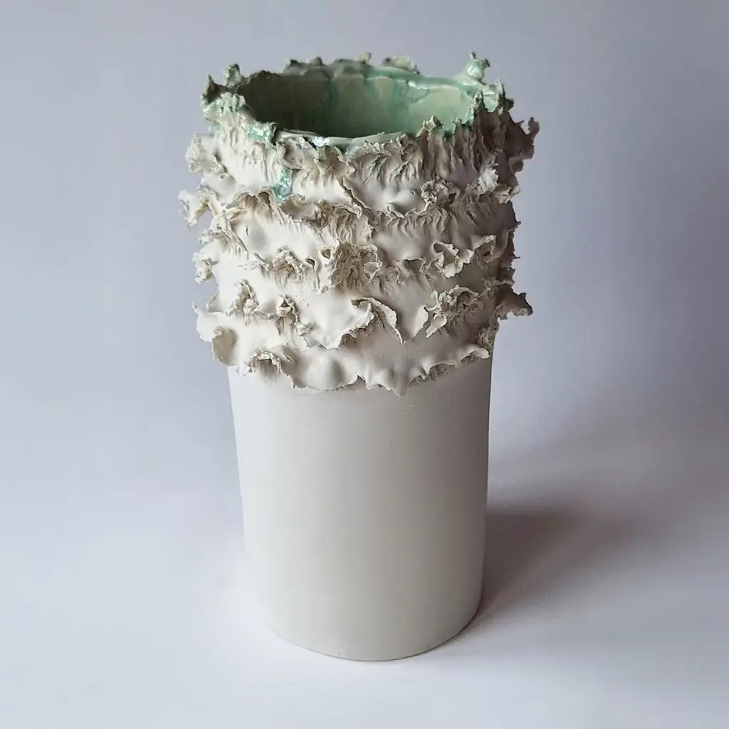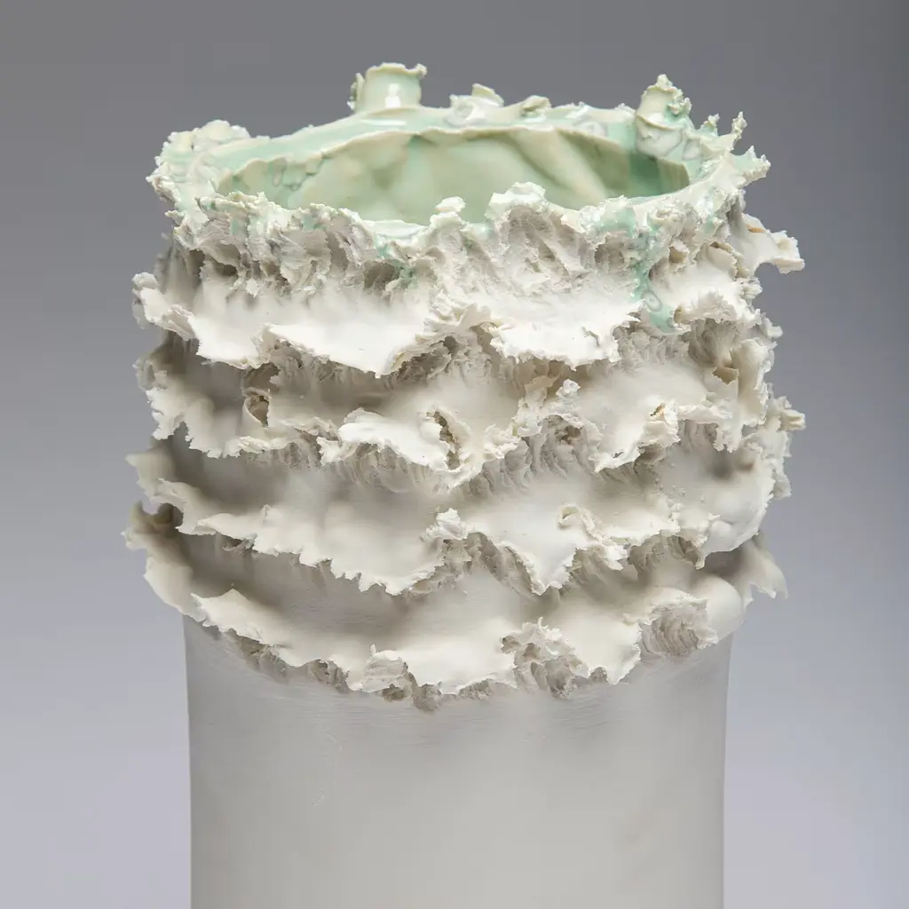 The Biscuit decorative vase is a captivating expression of art that seamlessly melds inspiration from nature with exceptional craftsmanship. This unique porcelain piece is part of the distinguished Soffio collection, designed to evoke the organic forms found in the natural world. Its aesthetic contrasts a sculptural body with fluid contours shaped by an innovative technique that mimics the gentle touch of the wind, capturing the essence of natural elements. Each vase is an individual work of art, meticulously crafted to ensure that no two pieces are alike. The intricate layering and distinctive textures reflect a harmonious relationship between the artist's vision and the forces of nature, offering a symbolic representation of life's dynamic journey. Incorporate this exquisite vase into any home décor setting, where its elegant silhouette and soft crystal green accents provide an artistic focal point, elevating the ambiance of the space. Due to its artisanal craftsmanship, each piece is unique and may feature slight variations.