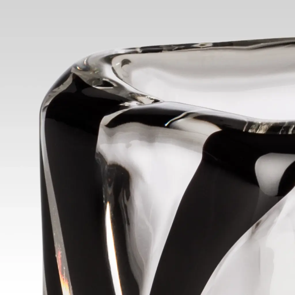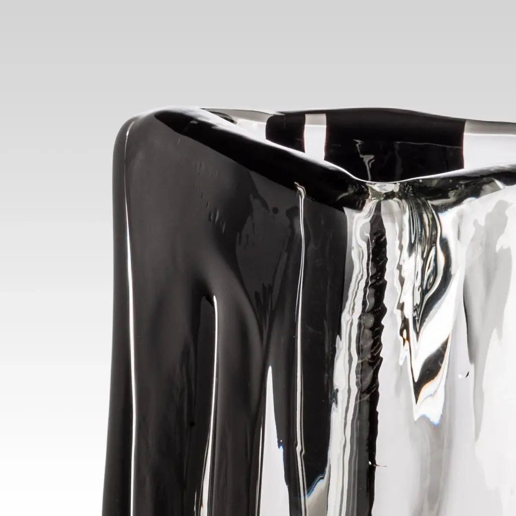Introducing the Black Accent Glass Vase, a true masterpiece. Adorn your home with our iconic Murano vase, crafted with the utmost detail and precision. Elevate your space with an artistic touch of luxury and sophistication.