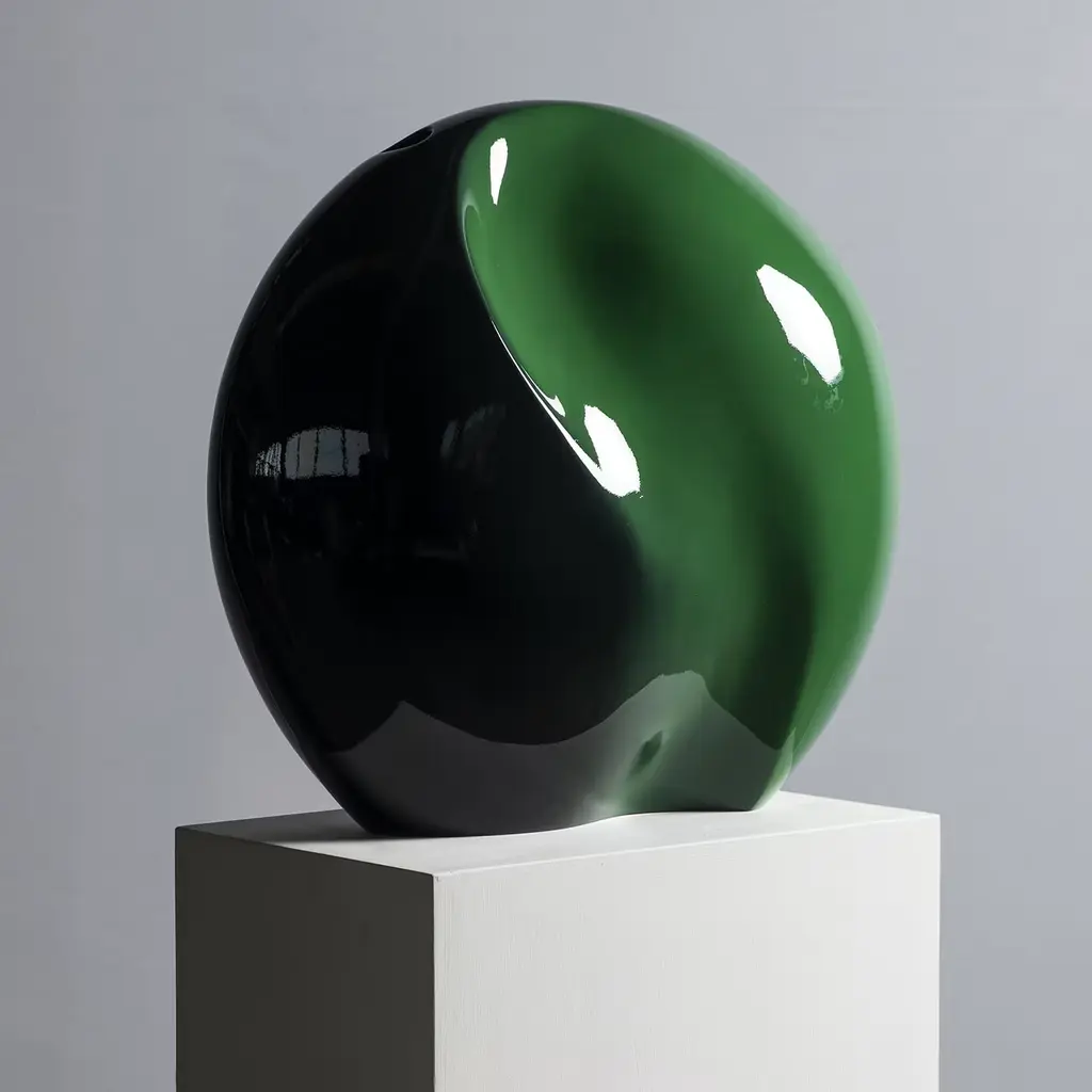Blending green and black in an alluring sinuous shape, the Seme Sculpture Vase is made from highly pigmented resins with a glossy finish. The piece is inspired by seeds, the beginning of all natural life. Available in black and white, blue and red as well as personalized palettes.