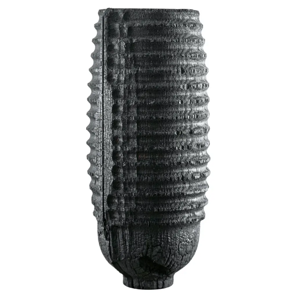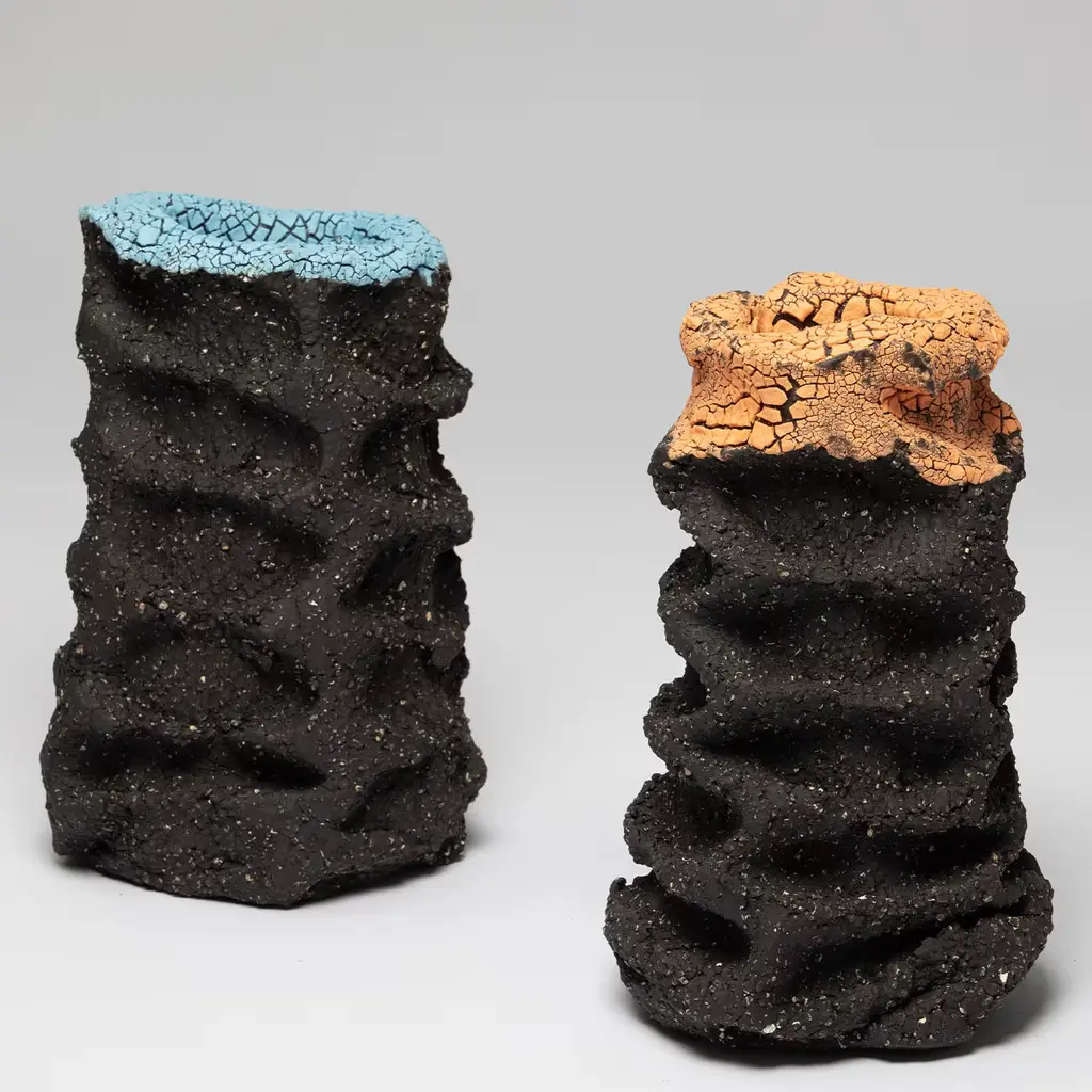 This decorative vase encapsulates a unique interplay between nature and artistry, drawing inspiration from rugged volcanic landscapes. Its design is a reflection of environments where life struggles to flourish, marked by the delicate partnership between resilient lichens and the stark element of rocks. Crafted from high-quality gres with chamotte, this vase possesses a rough texture complemented by an interior glazing that exhibits a striking crackle effect. This combination of materials not only enhances its visual appeal but also creates a juxtaposition between porous and glazed surfaces, showcasing the strength of the medium. Ideal for settings that merge art with design, it serves as a captivating focal point, perfect for adorned spaces seeking a touch of sophistication and unique character. One-of-a-kind piece.