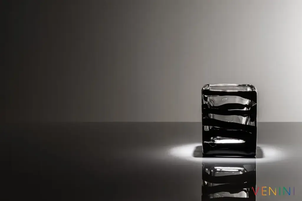 Black Belt Quadro is a vase made of submerged blown glass, in bands.Appealing to the eye, to the touch and to the mind. This work by Peter Marino was designed to be the most provocative one in the Fornace (Kiln). Striking beauty. The Quadro collection stands out for its perfectly cubic shape.The power of light and materiality are paramount to all my architectural projects – the Black Belt collection of vases evolved from these considerations. The craftsmanship of Venini dates to the 13th century, yet the process allows for designers to realize entirely modern concepts such as these individual works of art.Limited edition of 349 works
