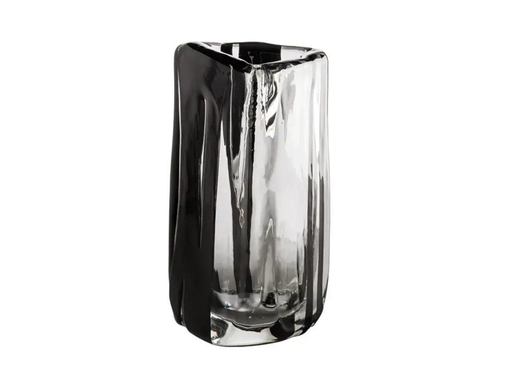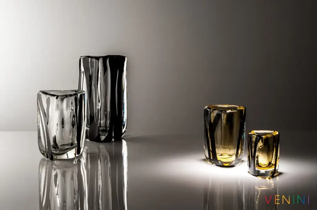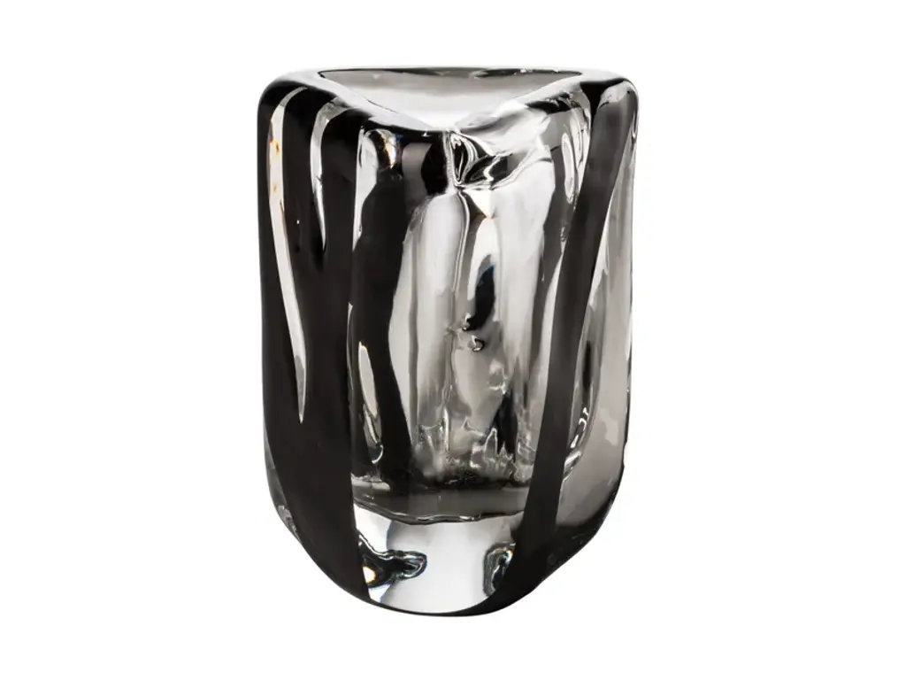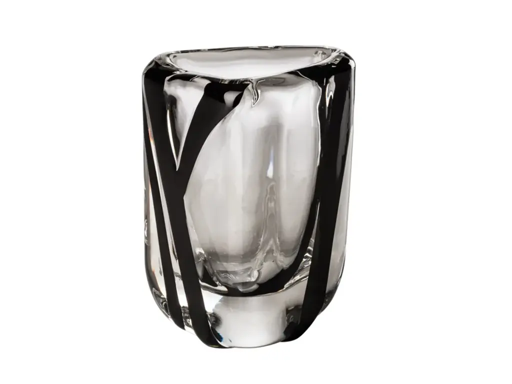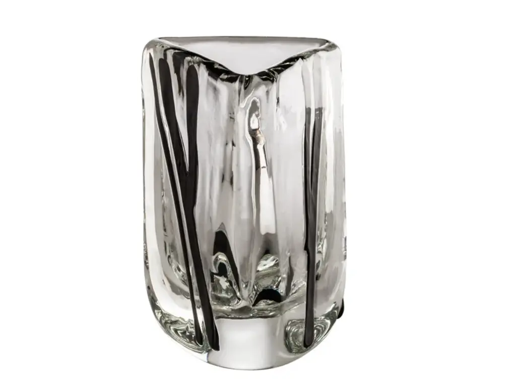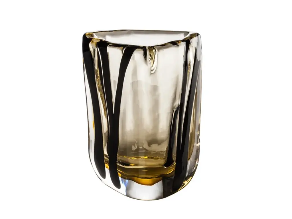 Black Belt Triangolo is a vase made of submerged blown glass, in bands. Available in different colors and sizes.Appealing to the eye, to the touch and to the mind. This work by Peter Marino was designed to be the most provocative one in the Fornace (Kiln). Striking beauty. The Triangolo collection stands out for its triangular shape: three sides with softly rounded edges.Colors:Crystal - Black BandsCrystal / Tea - Black BandsSize: X-Small, Small, Medium, LargeThe power of light and materiality are paramount to all my architectural projects – the Black Belt collection of vases evolved from these considerations. The craftsmanship of Venini dates to the 13th century, yet the process allows for designers to realize entirely modern concepts such as these individual works of art.Limited edition of 349 works