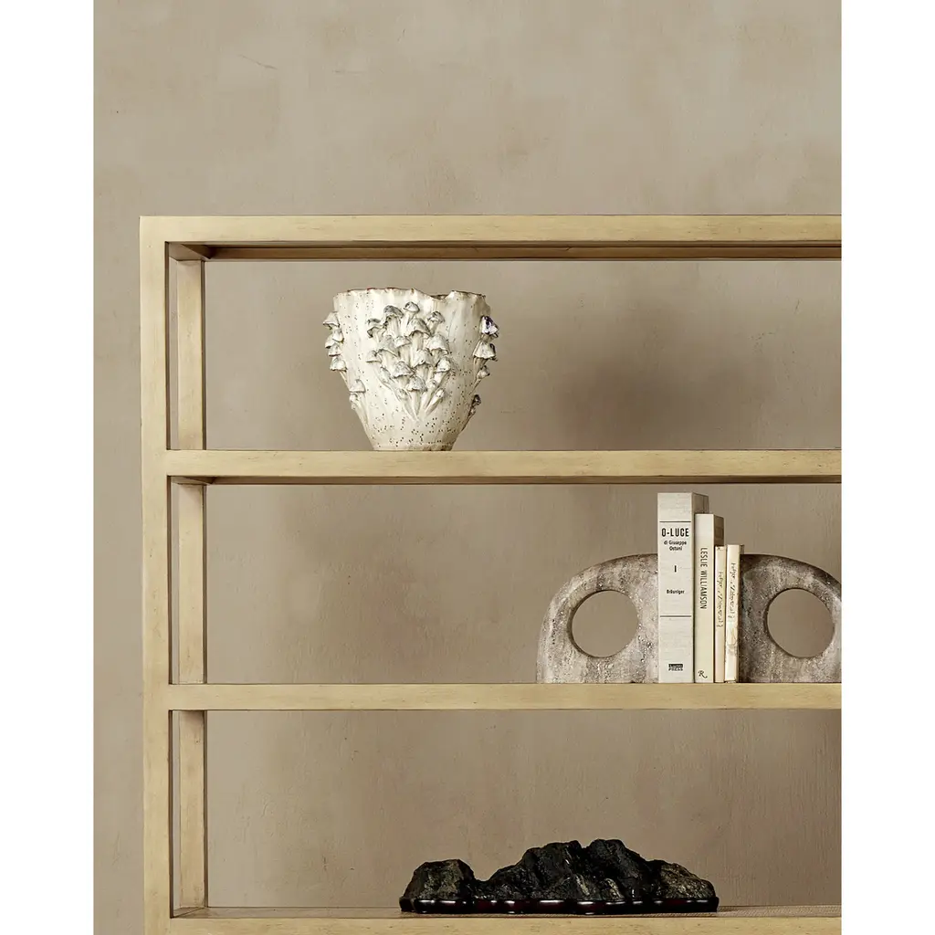 The Black Forest Mushrooms Large Ivory Vase is a vessel onto which fanciful mushrooms in a blue reactive glaze have been affixed. The expressive nature of the fungi makes this ivory vase whimsical and interesting. Made of ceramic by a group of women who live at the border of Burma and Thailand, the incredible hand-thrown vase is composed and then the decorative elements are put place, one-by-one, by hand.