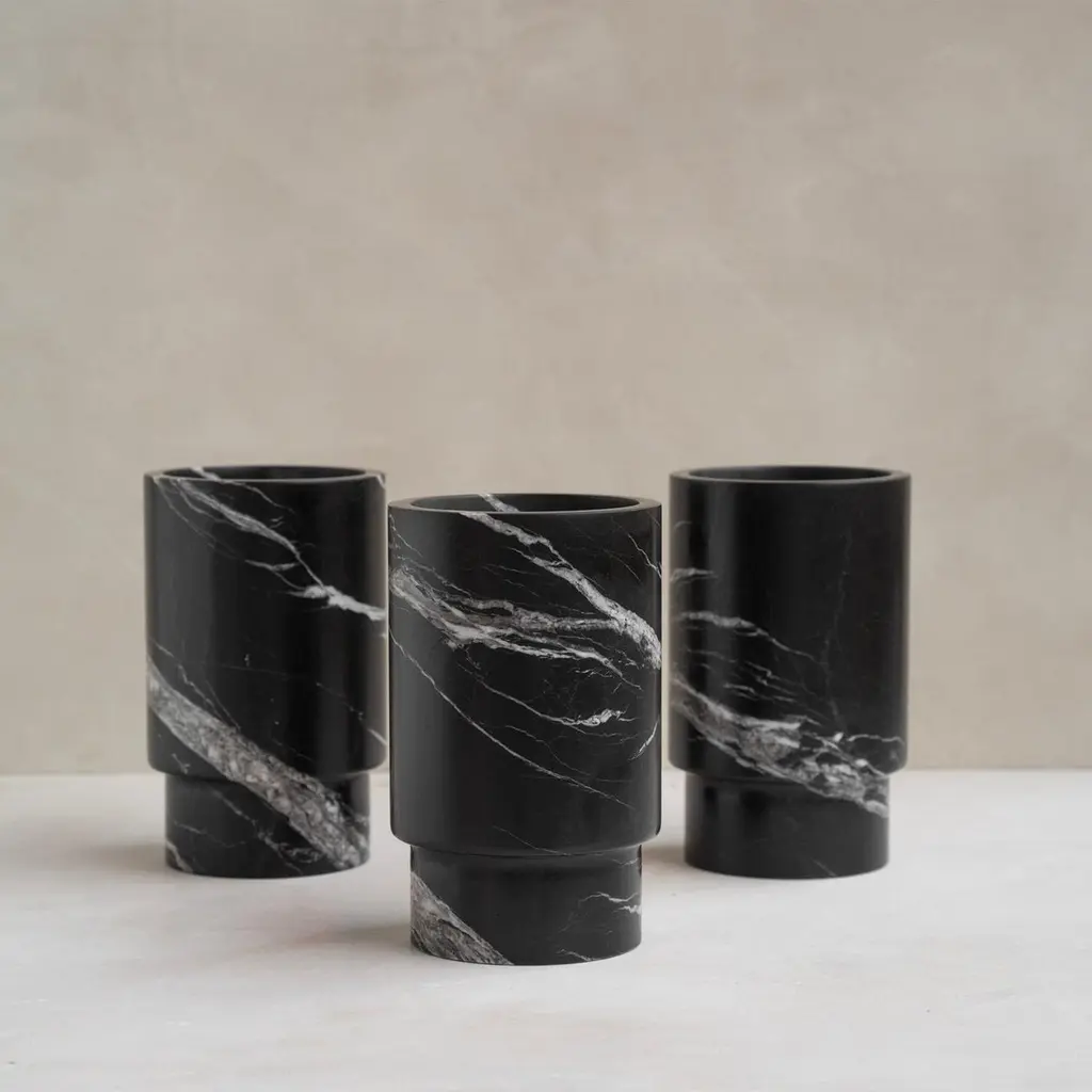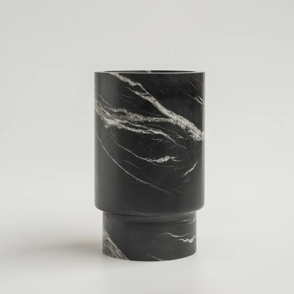 Crafted from a natural marble, this vase will be sure to win your heart. It can be used to hold your wine bottle, blooms, kitchen utensils and so much more. Place it in amongst your decor objects for a truly outstanding textural ornament. Overall dimensions: W: 12 cm D: 12 cm H: 20 cm Material: MarbleCare: do not use any acid, clean with a gentle cloth and soap