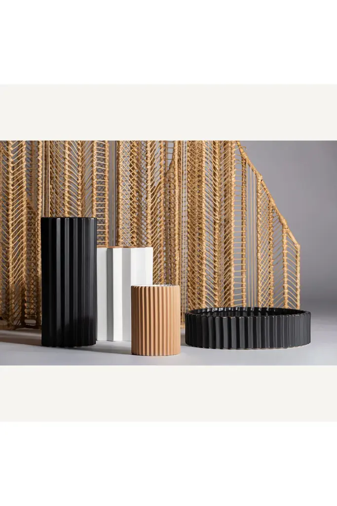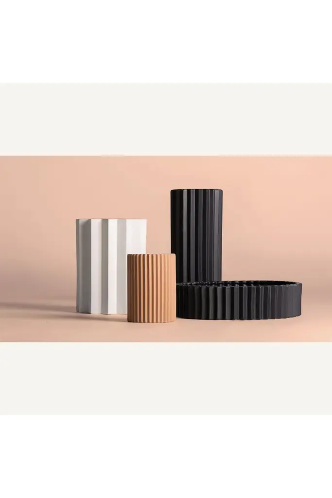 Black Stone Fluted Vase | Vical Home Plissé