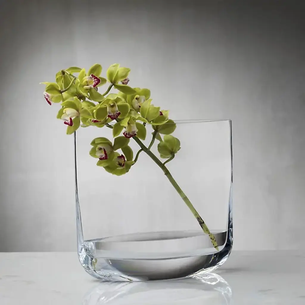 With effortless elegance, the Blade Regular Vase by Nude brings a modern touch of charm to home décor. This sculptural piece is crafted from lead-free crystal glass to form its narrow, elongated frame. A tinted hue brings added drama to the piece while a transparent base lightens its look. A standout piece when placed alone, this vase can be combined with other shapes and sizes for a minimalist statement.
